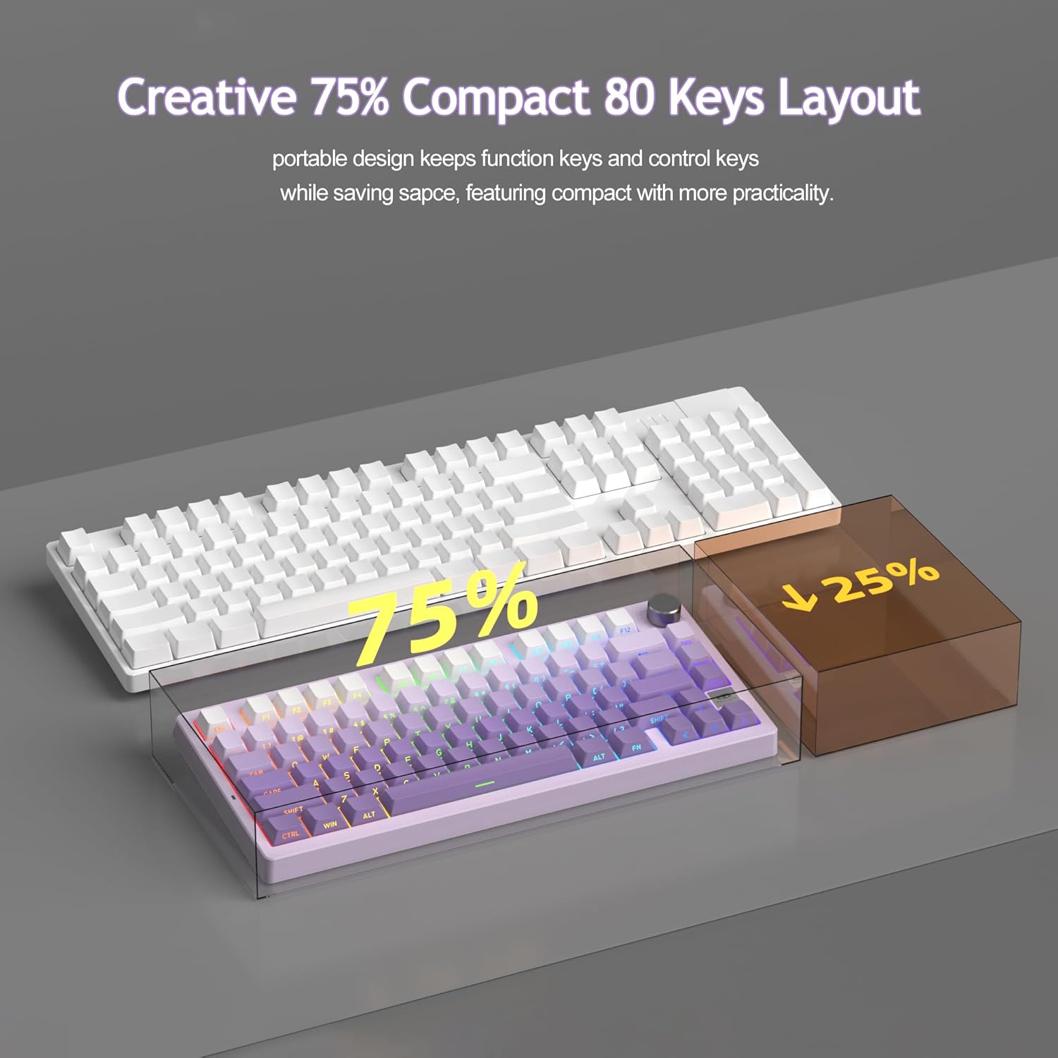 [4000mAh LARGE BATTERY and PBT KEYCAPS]: The 75% structure mechanical keyboard saves extra desktop house whereas retaining operate keys and arrow keys for video games and work. all 80 keys 100% anti-ghosting, distinctive aspect printed sturdy PBT keycaps, additionally outfitted with a 4000mAh large-capacity battery, help win/mac twin system.