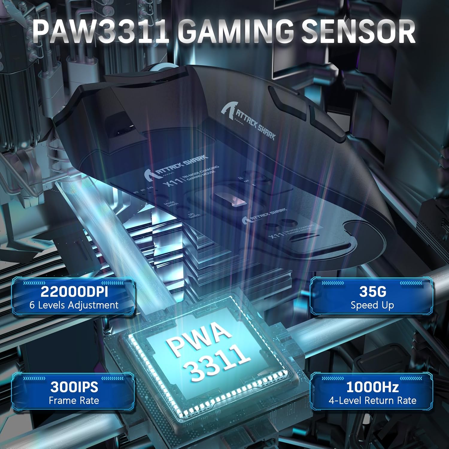【PixArt PAW3311 Gaming Sensor】The X11 gaming mouse is powered by distinctive efficiency optical mouse PixArt 3311 flagship sensor, 6 ranges of adjustable DPI as much as 22000,1000hz/1ms polling charge ,300 IPS pace, 35g acceleration,offers unmatched accuracy and response pace for aggressive video games.