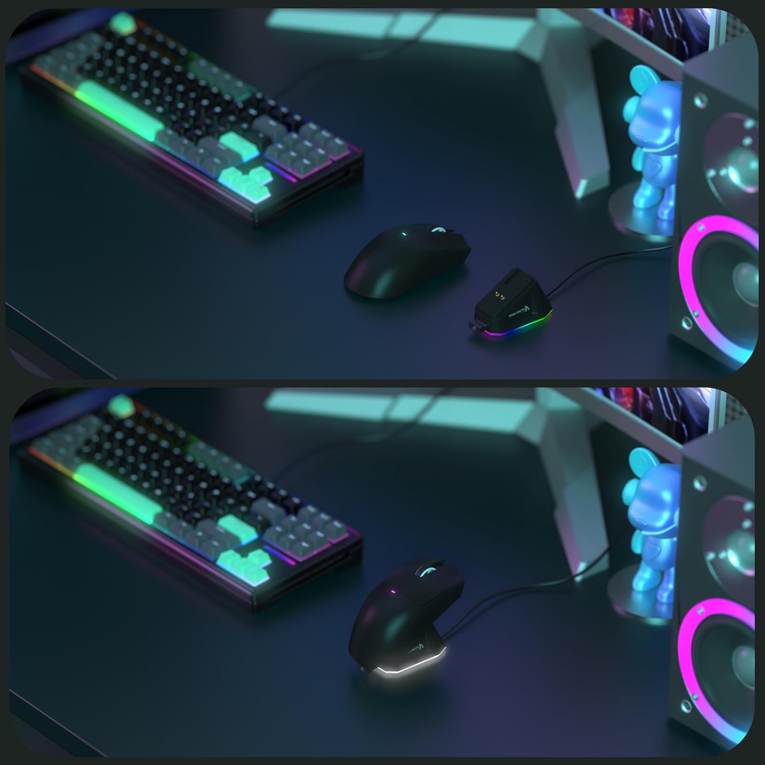 【Magnetic RGB Charging Dock with USB 2.0 port】X11 black wi-fi mouse full with a magnetic RGB quick charging dock, that gives 5 hours of use on a 10-minute cost. X11 wi-fi mouse Bluetooth/2.4G/wired three connection mode switching solely want a pc port,simple to function, no must plug and unplug often.