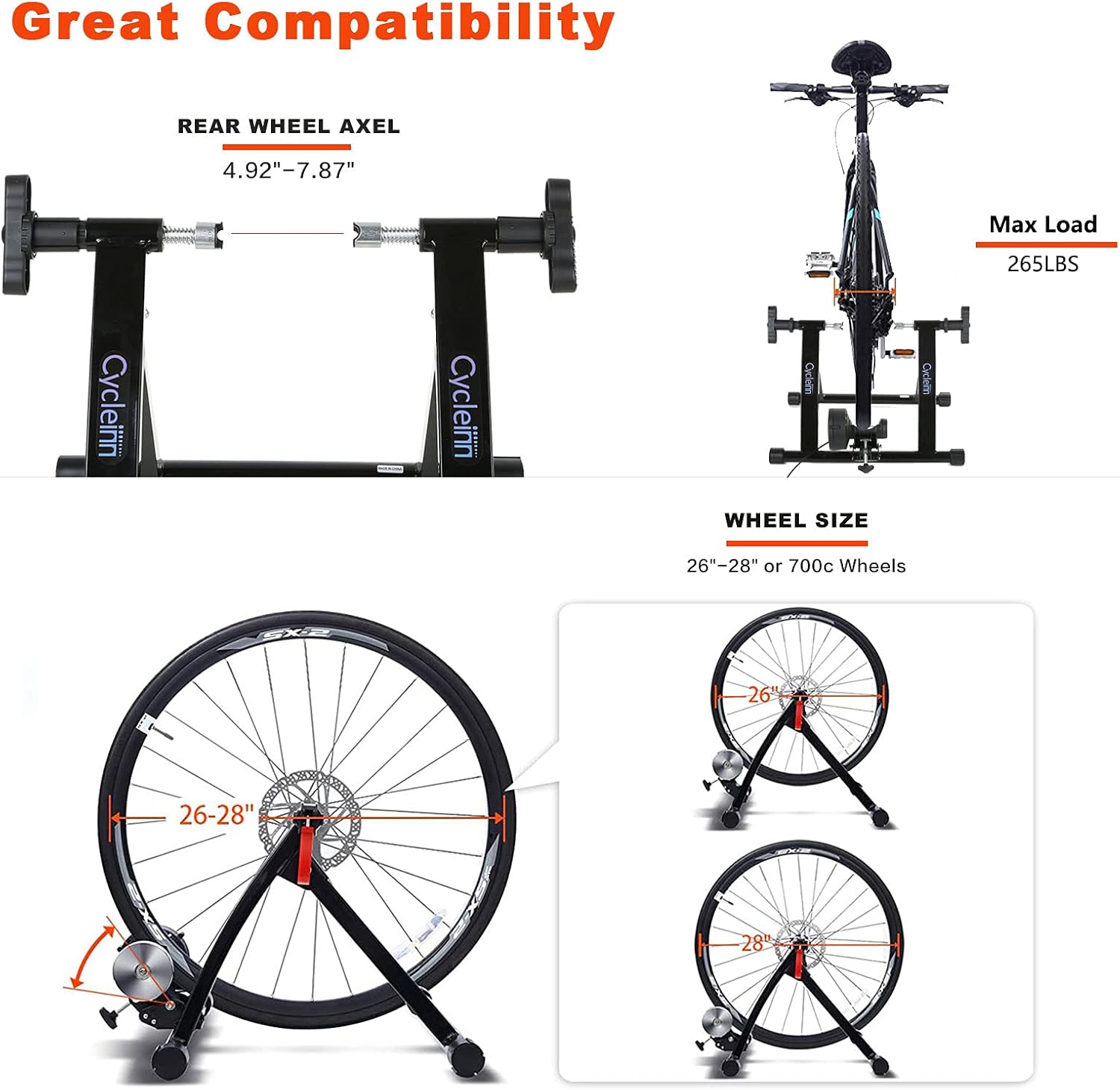 🚴PORTABLE & COMPATIBLE – Moveable bike coach stand is light-weight and compact, simple to hold and storage. The indoor bike coach stand suits any street or mountain bike with a 26″-28″ or 700c wheel (mountain bikes with thru-axle will not be appropriate). Max load 265lbs