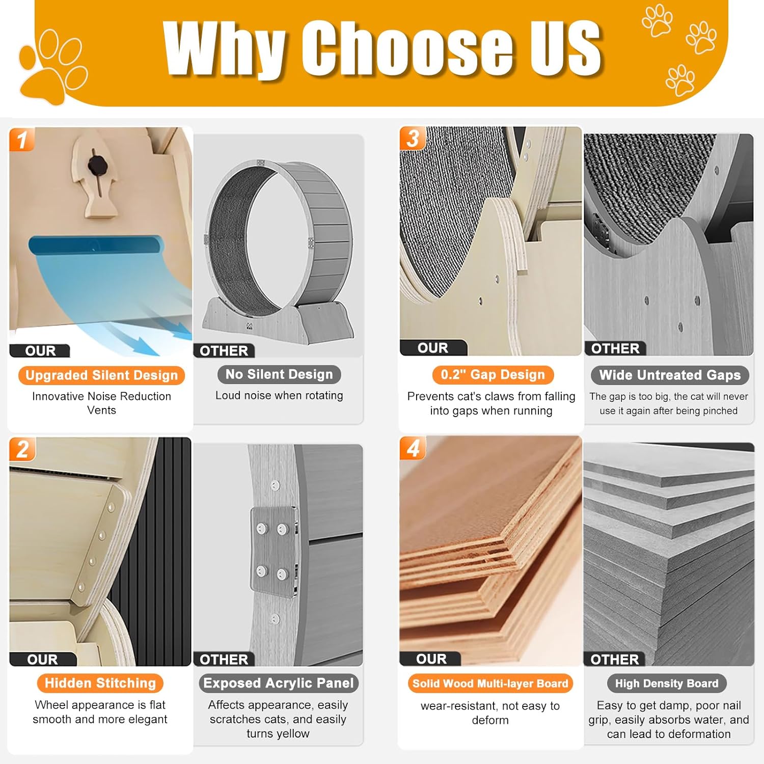 ✅【Cat Security At all times Comes First】Everyone knows cats are very agile, however as soon as it get damage on a cat wheel, it will by no means run once more. So, Our the hole between base and curler is lowered to a minimal lower than 6mm to stop the cat’s paws from pinching. In any other case, will probably be only a piece of decor furnishings!