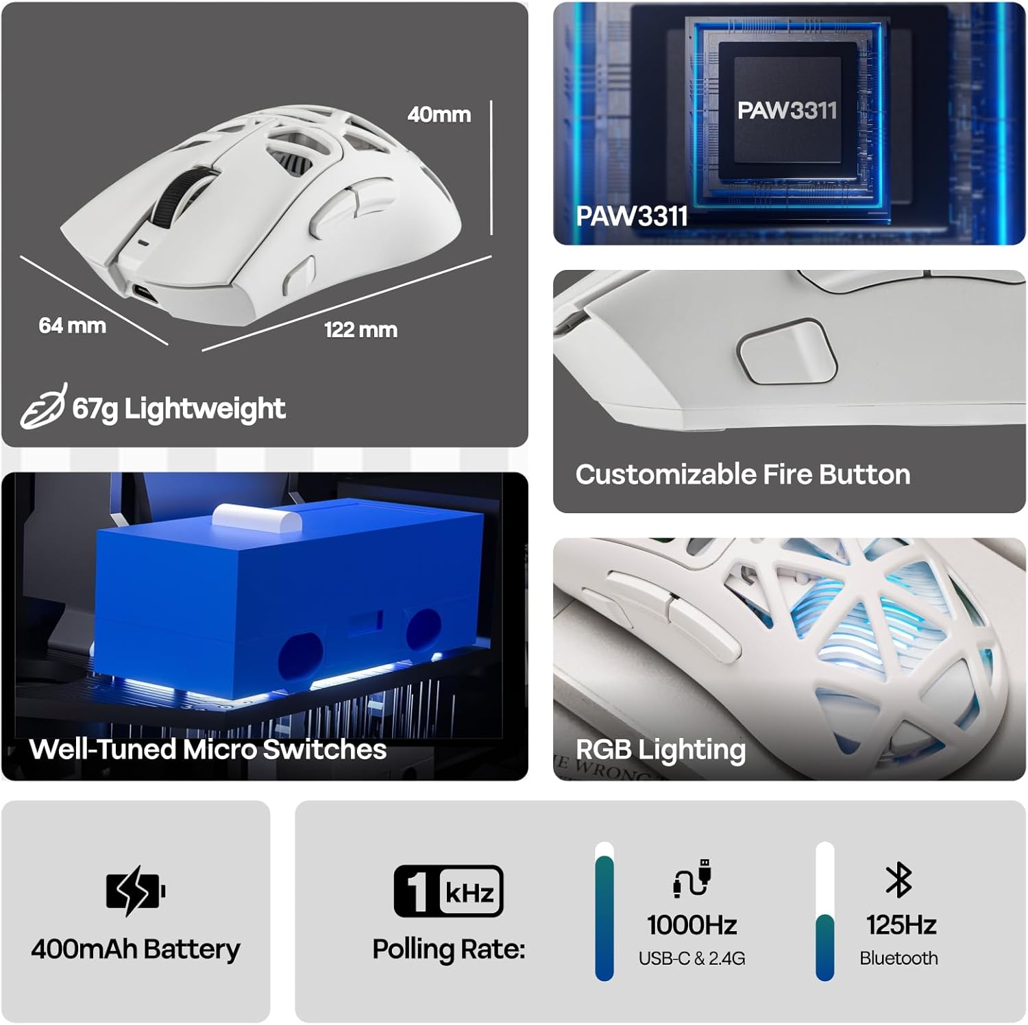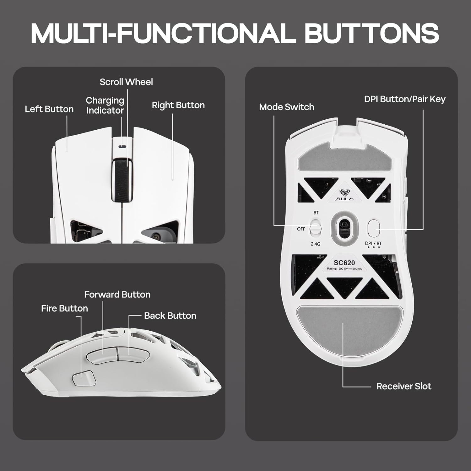 【Honeycomb Light-weight Design for Breathable Consolation】 Weighing solely about 67g, the SC620 gaming mouse’s superior honeycomb shell reduces weight whereas sustaining structural power. The open design improves airflow to maintain your hand cool and dry throughout lengthy periods, decreasing sweat and fatigue. Mixed with an ergonomic form that matches naturally in your palm, this mouse provides superior consolation and management for prolonged use. The SC620 brings a featherlight really feel for uninterrupted efficiency.