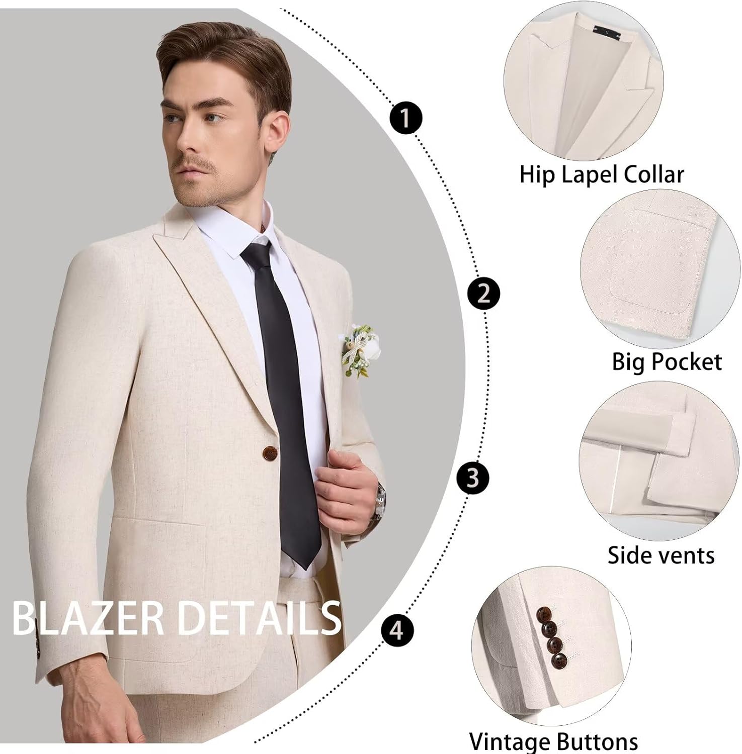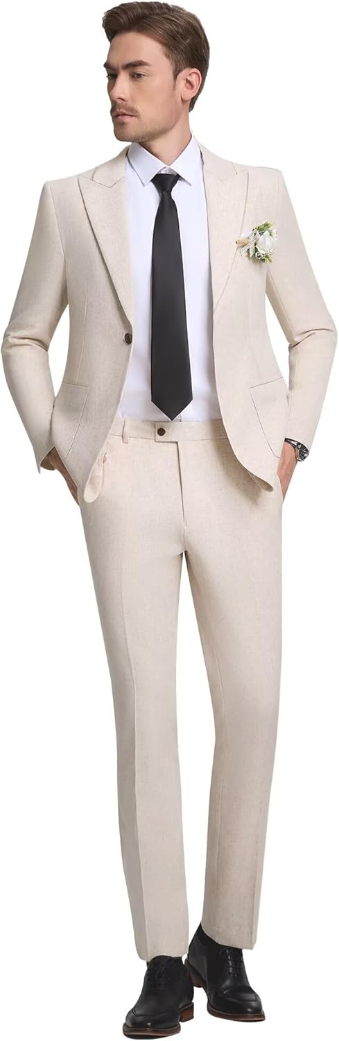 HUEZOE Mens Linen Go well with 2 Piece Groom Seaside Wedding ceremony Outfit mens suitmens suit
