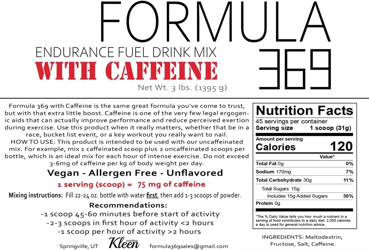 Every scoop accommodates 30g of carbs, 75 mg of caffeine, and 170 mg of sodium.