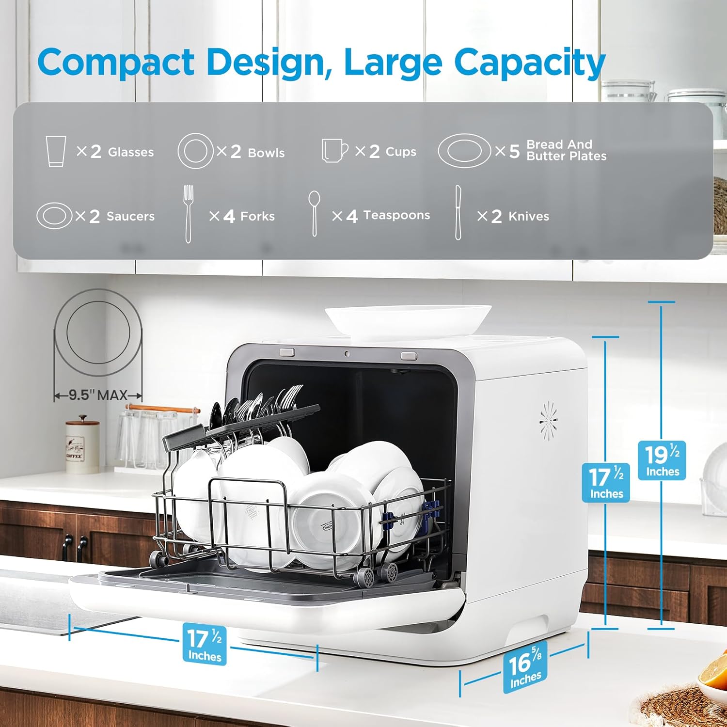 Midea Countertop Dishwasher, Power Star Moveable Dishwasher, 2 Place Settings& 5-in-1 Performance, 5+1 Program choices, Fast, Child-Care, Fruit Wash& Delicate, Prolonged Dry. Upgraded drying for babycare. Dish Washer for Dorm, RV& Condominium, White