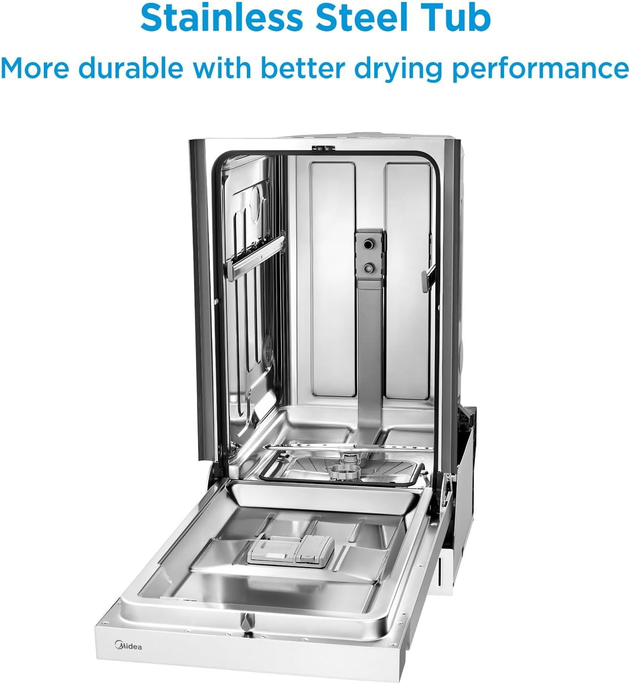 Slimline Design with Giant Capability : The Midea built-in dishwasher boasts a slim physique that takes up minimal area and is simple to suit. It includes a digital management panel with an LED show and has been thoughtfully designed to accommodate bigger plates, pots, and pans as much as 11 inches in peak.