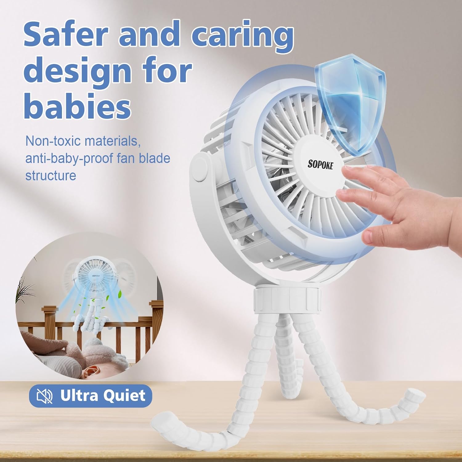 【Child Security Design】SOPOKE small mattress stroller fan is specifically designed together with your child’s security in thoughts. We’ve got chosen food-grade silicone supplies to stop unintended ingestion by infants. Moreover, the fan incorporates a distinctive 77mm opening design that successfully prevents the child’s fingers from reaching inside. This design means that you can use the fan with peace of thoughts, with out worrying about security issues.
