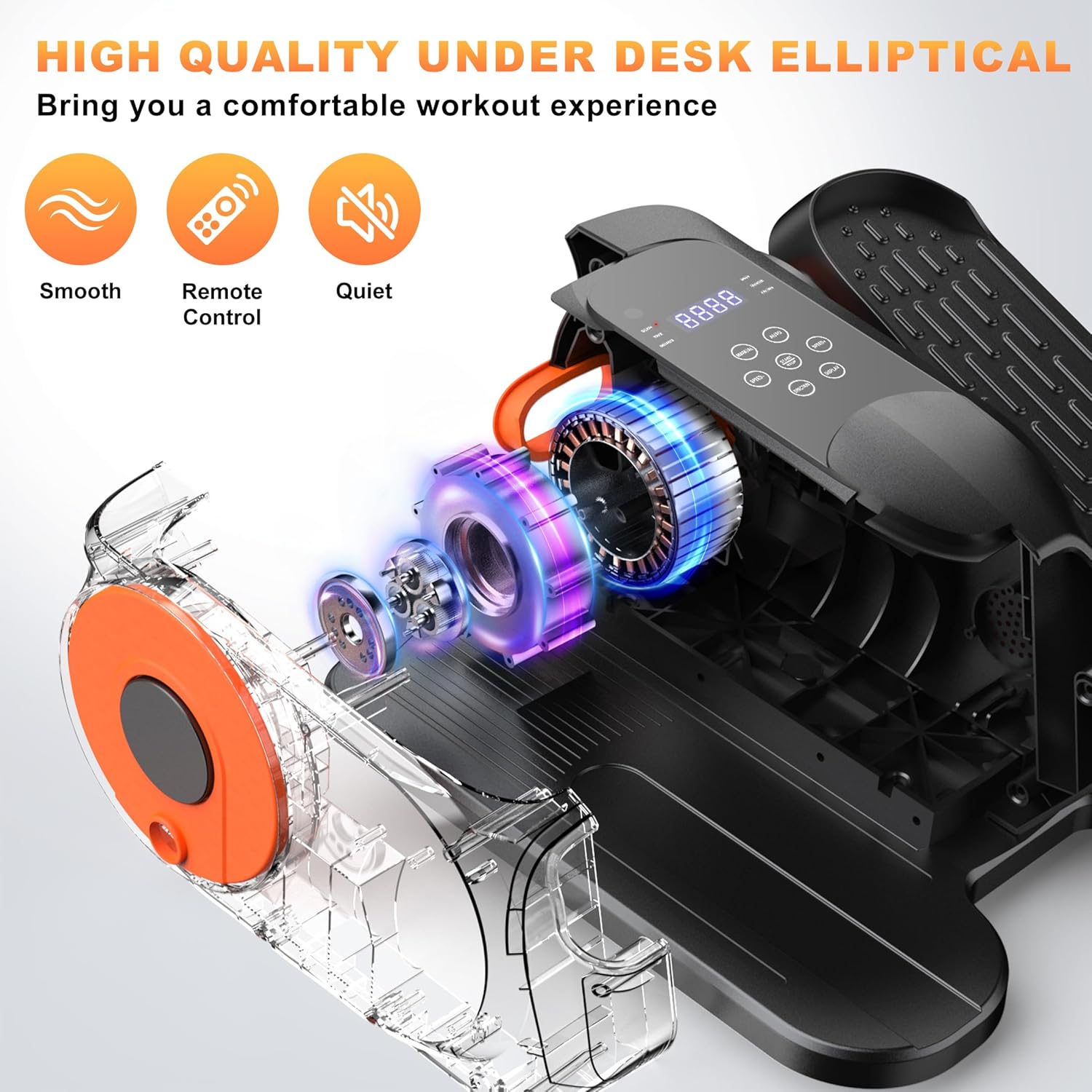 【Extremely-Quiet & Moveable Elliptical】Expertise clean, silent exercises with our elliptical. Light-weight and fitted with a built-in deal with, it’s effortlessly transportable and straightforward to retailer. After your exercise, in case your elliptical coach continues to be powered on however in idle mode, it’s possible you’ll hear a delicate intermittent beep. That is NOT a malfunction—it’s our considerate security reminder designed to immediate you to unplug the facility twine promptly.