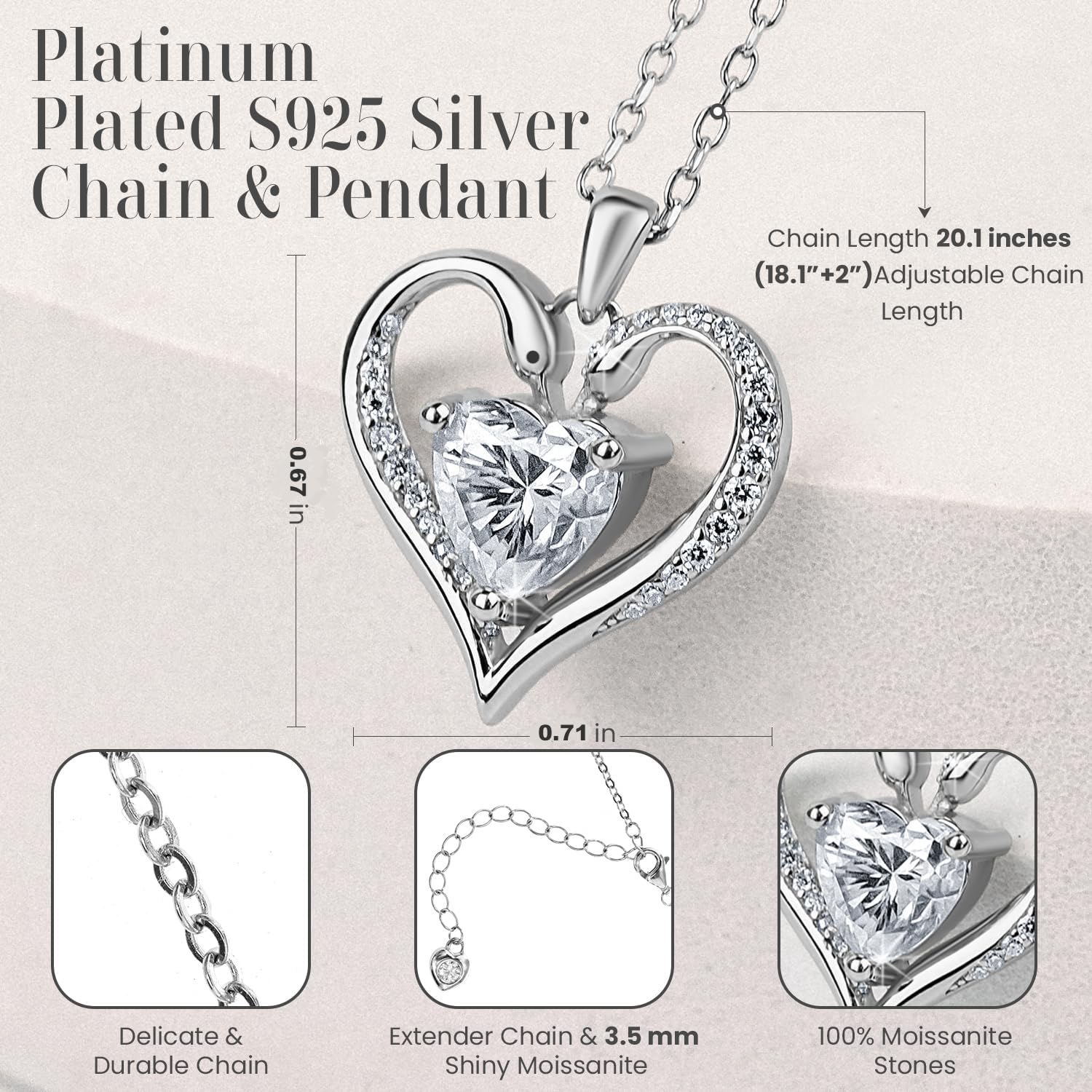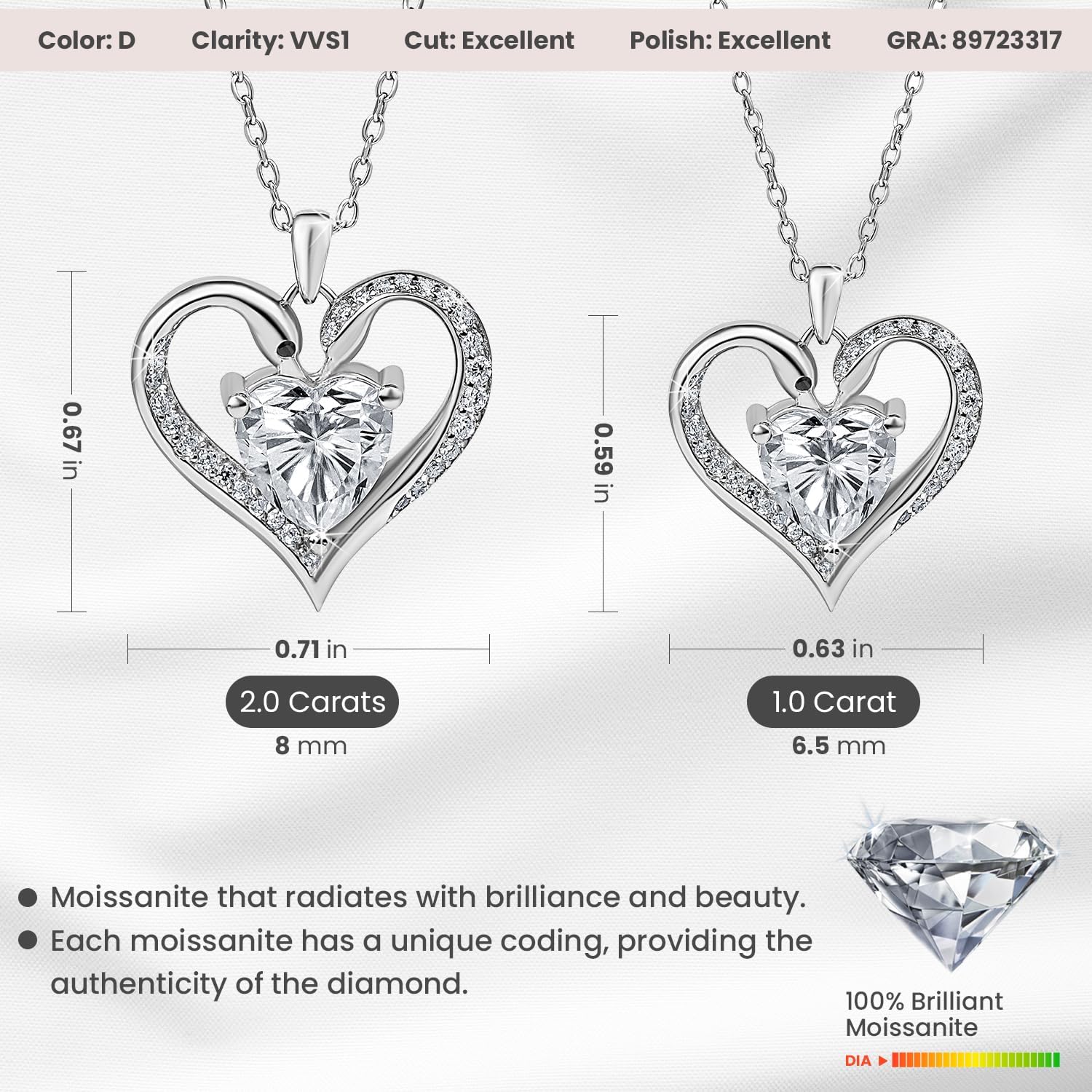 Moissanite Pendant Necklace for Ladies – 925 Sterling Silver Necklace f…