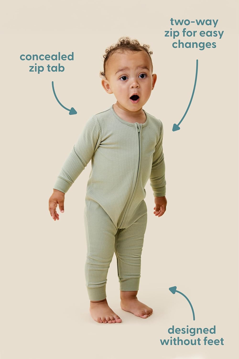 Ribbed Intelligent Zip Footed Child Pajamas