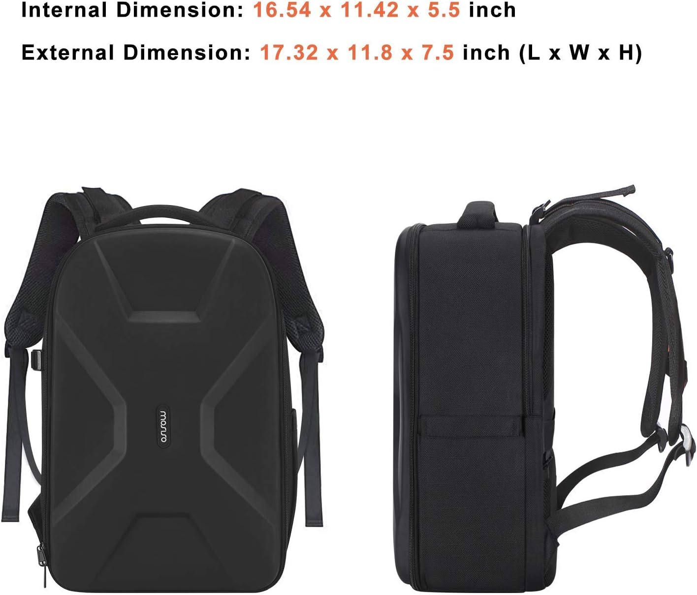 Dimension:17.32 x 11.8 x 7.5 inch. 2 compartments included. Padded detachable modular inserts within the higher one (16.54 x 11.42 x 5.5 inch) is personalized dividers for various cameras, flashes, lens and drones. You may set up the inside padded to regulate the inside cupboard space based on your wants. One other one (16.93 x 10.63 x 1.58 inch) is laptop computer compartment to storage as much as 16 inch.