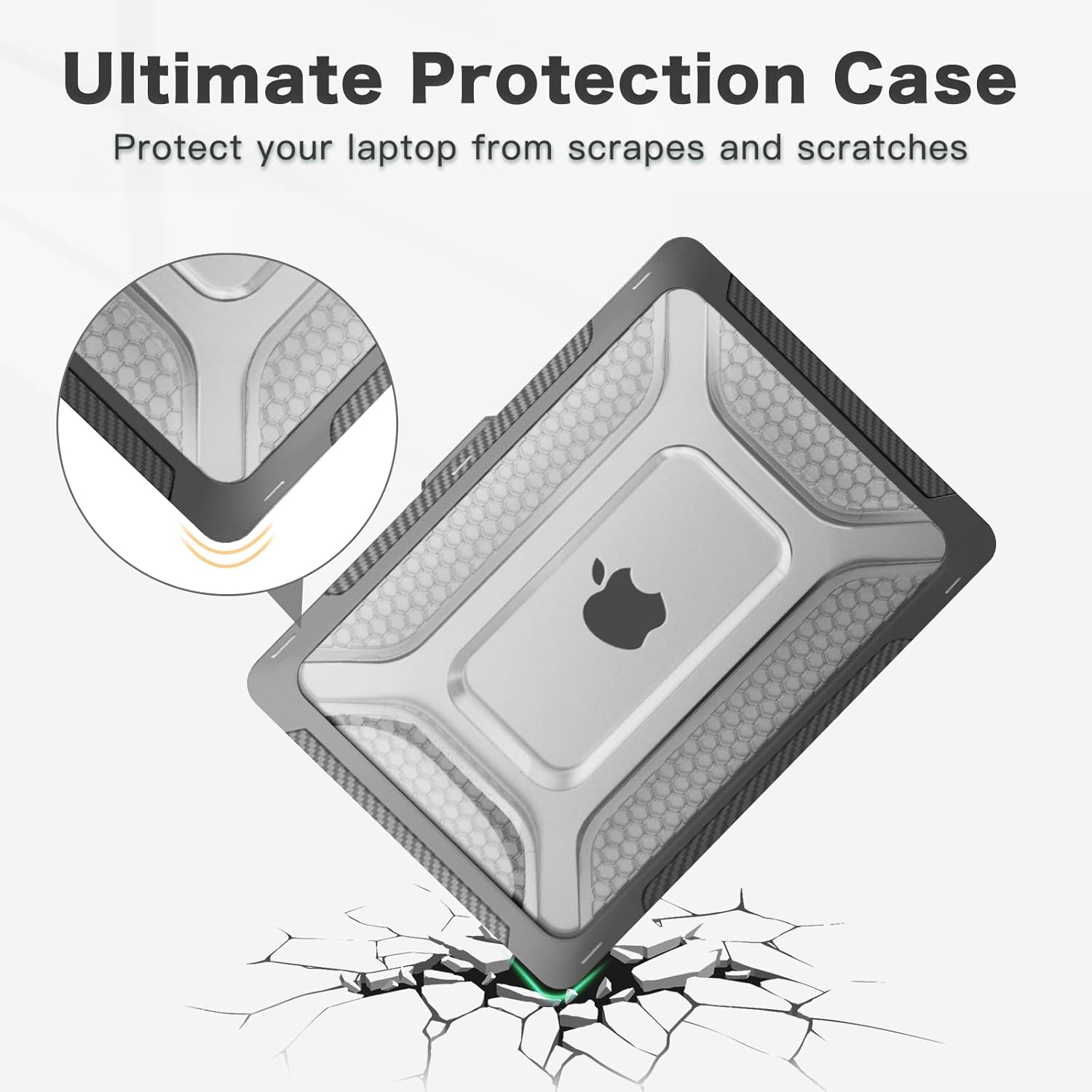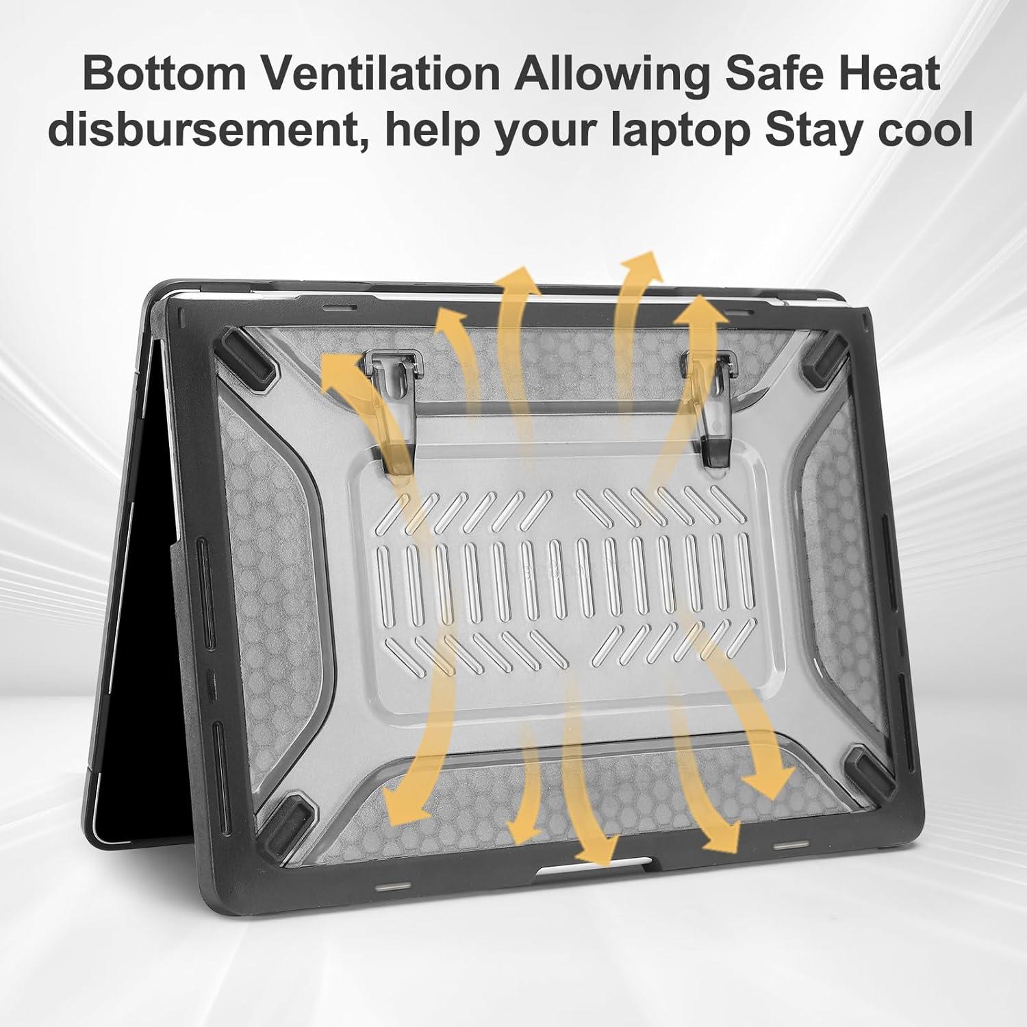 The built-in foldable kickstands present an applicable ergonomic viewing & typing angle, offer you a greater visible expertise. Engineered shock-absorbing beveled ridges honeycomb design wraparound TPU bumper heavy responsibility laborious shell, supplies final safety in your laptop computer in opposition to scratches, drops, unintentional scuffs and different damages.