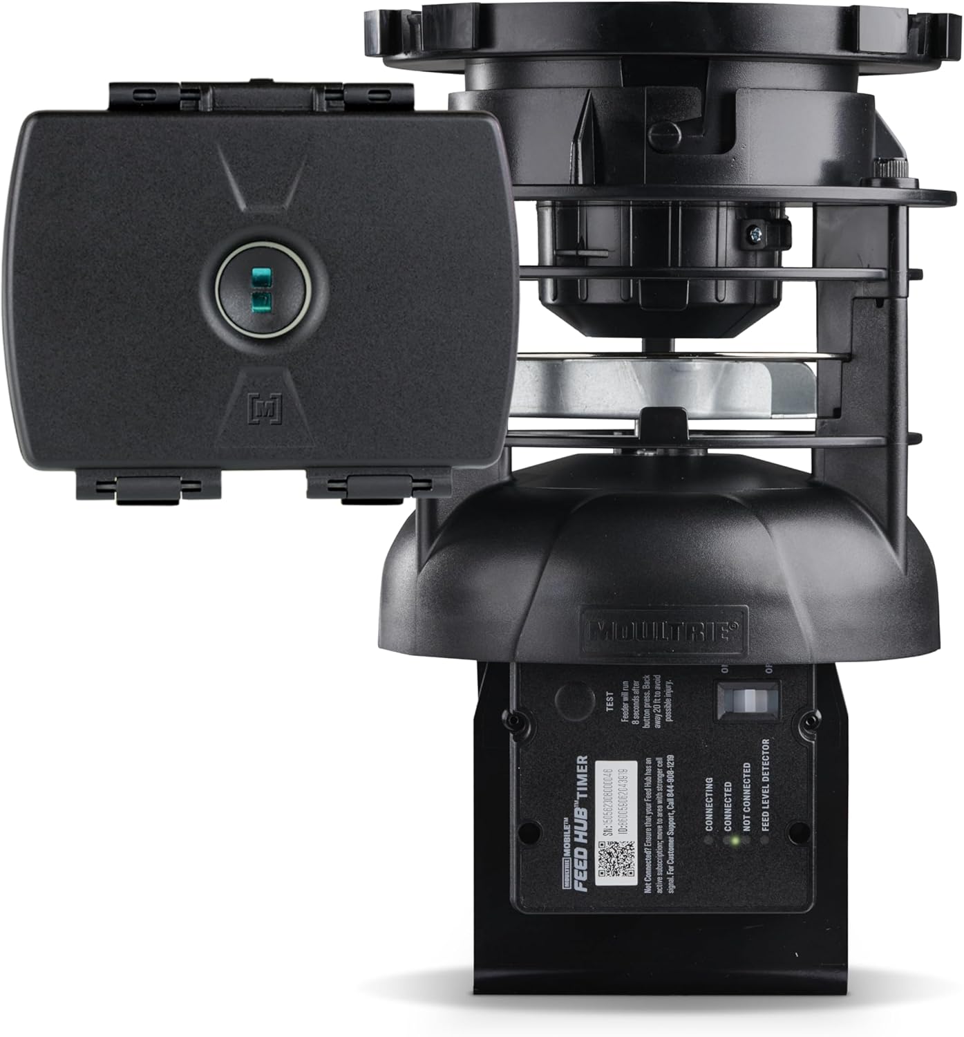 Introducing FEED HUB KIT, the revolutionary feeder equipment that turns your feeder right into a mobile feeder. With FEED HUB KIT, you’ve got full management over your feeder, irrespective of the place you’re, by means of the Moultrie Cell app. The FEED HUB KIT’s pre-installed mobile timer makes it simple to swap your feeder equipment for a related answer, permitting for distant management and administration straight out of your smartphone: Verify remaining feed ranges and battery standing, eliminating pointless journeys to your feeder. Set your feed schedule with as much as 10 feed occasions per day, and remotely regulate your schedules primarily based on the season. Have peace of thoughts that your feeder is working easily with Well being Checks and notifications for low ranges, or when a clog or jam is detected. With Feed on Demand, you possibly can run your feeder if you find yourself on the best way or within the stand. HOW IT WORKS FEED HUB makes use of the identical mobile connectivity as our path cameras, permitting you to handle and monitor your feeder remotely from anyplace. The Feed Stage Detector attaches to the within of your hopper lid, and measures the feed stage within the hopper. The Mobile Timer within the feeder equipment controls the motor operation and sends info + updates between your feeder and the Moultrie Cell app. The Moultrie Cell app is your management heart for each your feeders and cameras. Verify feed ranges, regulate feed occasions, replace settings and feed on demand utilizing the app.