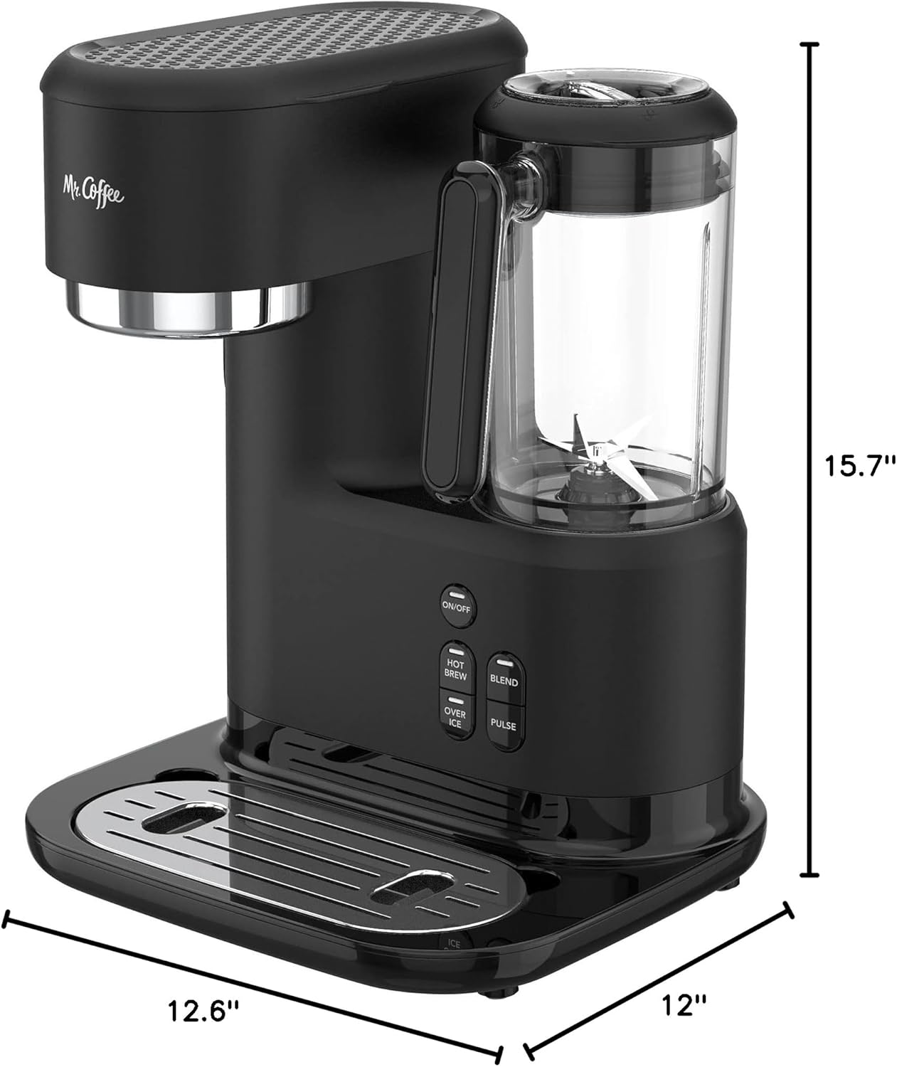 Effortlessly craft frappes, smoothies, and a wide range of drinks with the built-in blender and computerized mixing cycle. Dimensions (L x W x H): 12.60 x 12.00 x 15.70 inches