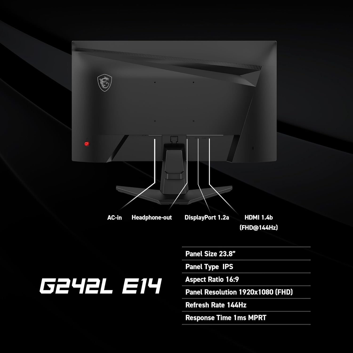 MSI G242L E14 24-inch 1920 x 1080 (FHD) Gaming Monitor, 144Hz, Adaptiv…