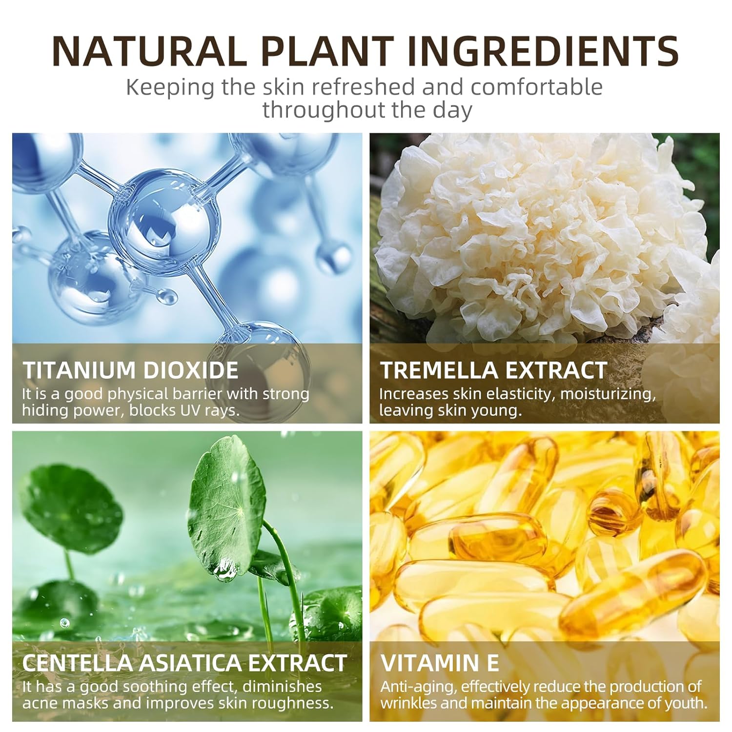 【Lengthy Lasting Concealer】The bb cream basis makes use of a skin-friendly elastic bionic movie. The delicate bionic movie presses out a fair and easy BB cream to create a full protection basis. Brightens pores and skin tone, hides blemishes, pores, and zits marks. It has a 24-hour concealer impact, doesn’t clog pores, and is delicate, comfy and breathable.
