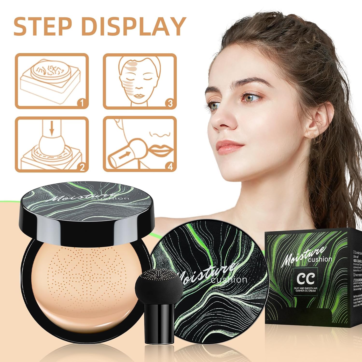 【Plant Pores and skin Care Components】The mushroom head air cushion cc cream Comprises quite a lot of pure skincare elements, similar to Centella asiatica extract, Tremella extract, vitamin E, and so on. Whereas making use of make-up, it additionally balances sebum ranges, reduces zits, spots, wonderful strains, and nourishes the pores and skin.