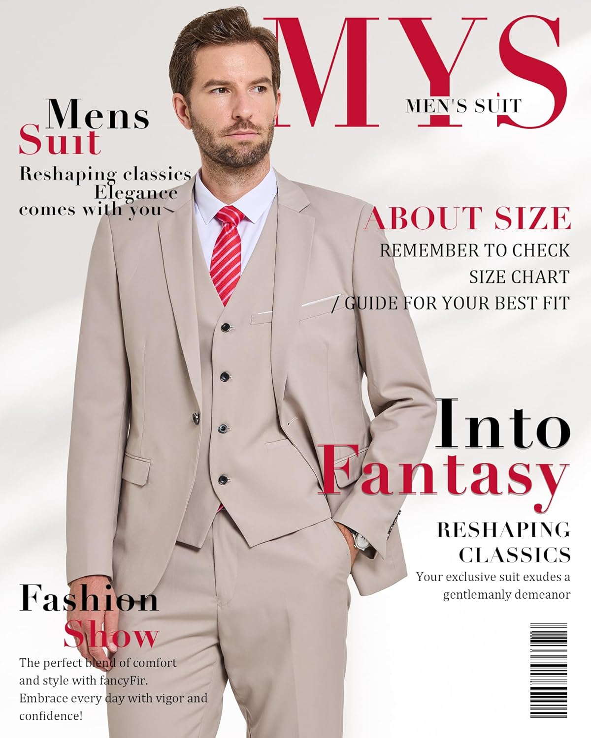 MY’S Males’s 3 Piece Go well with Set with Tie, One Button Slim Match Strong Jacket…