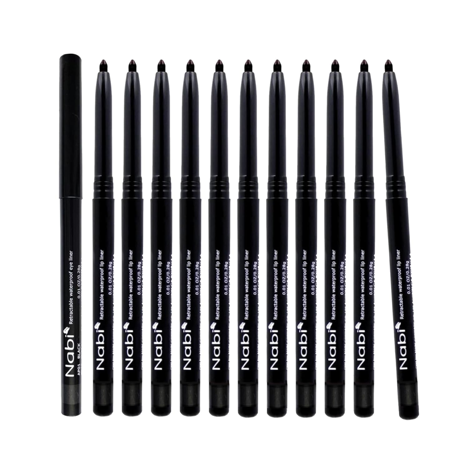 Nabi Retractable Waterproof Eyeliner Pencil – 12‑Pack Smudge‑Proof, Lo…