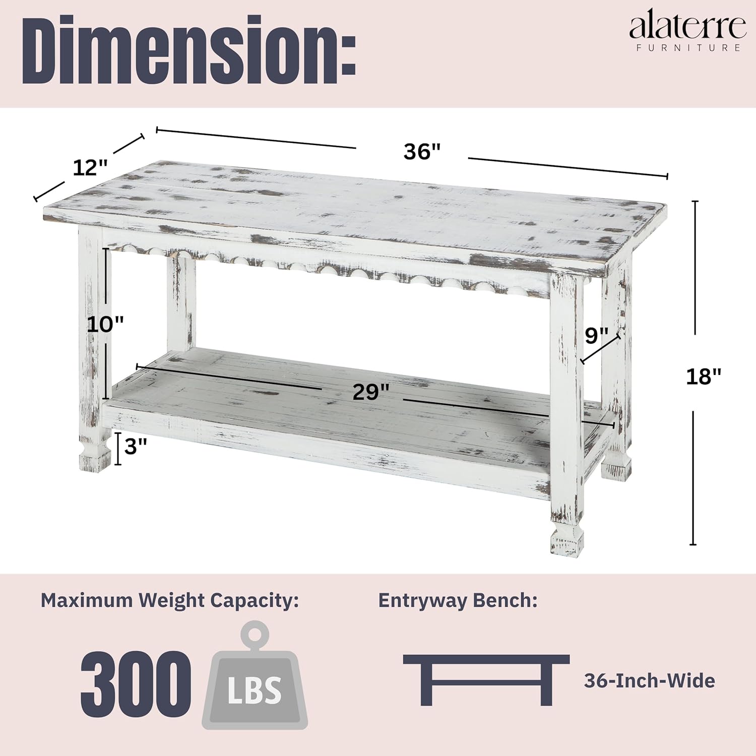 Nation Cottage 36-Inch Farmhouse Entryway Bench with Storage Shelf – …