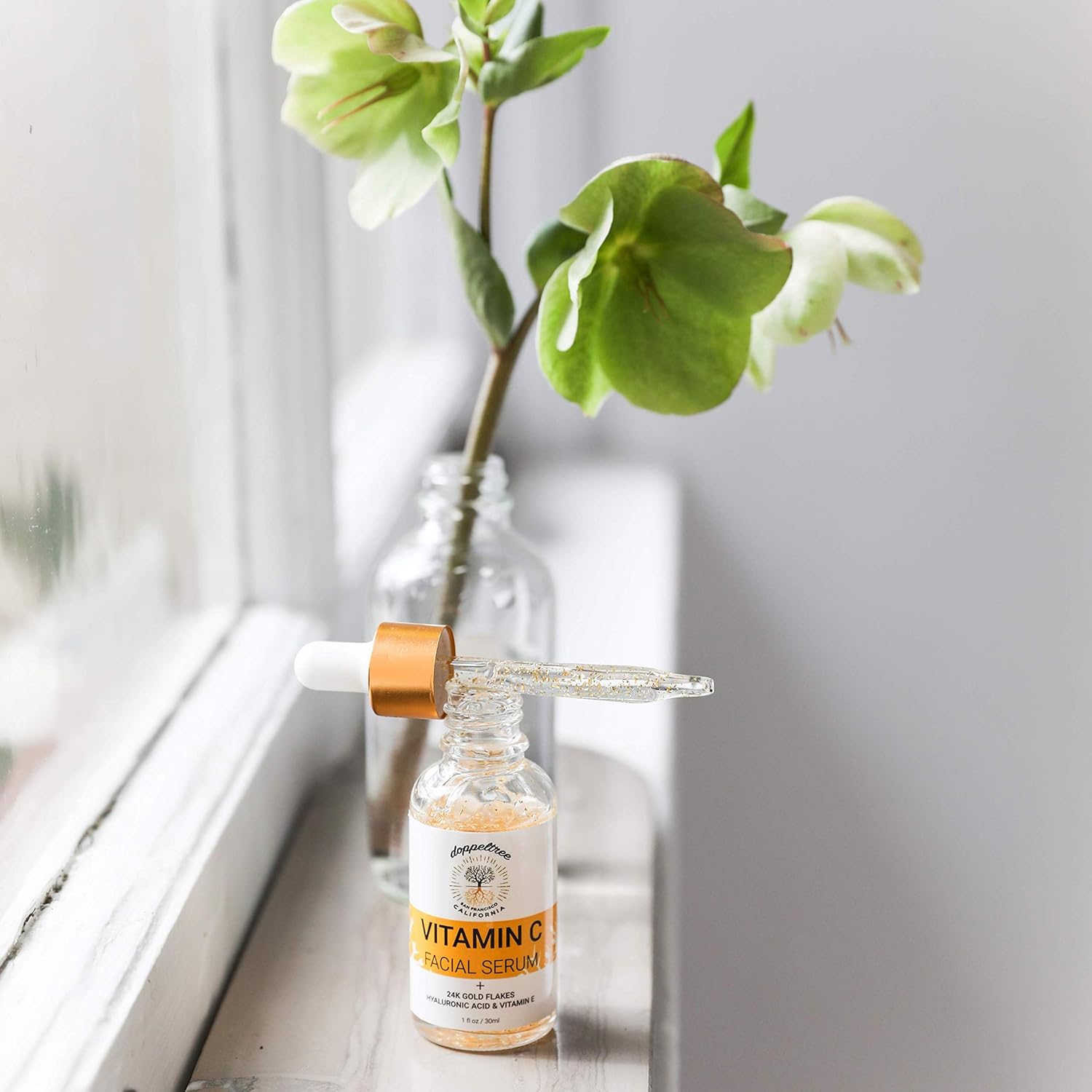 Natural Vitamin C Face Serum with 24K Gold Flakes, Hyaluronic Acid, Vi…