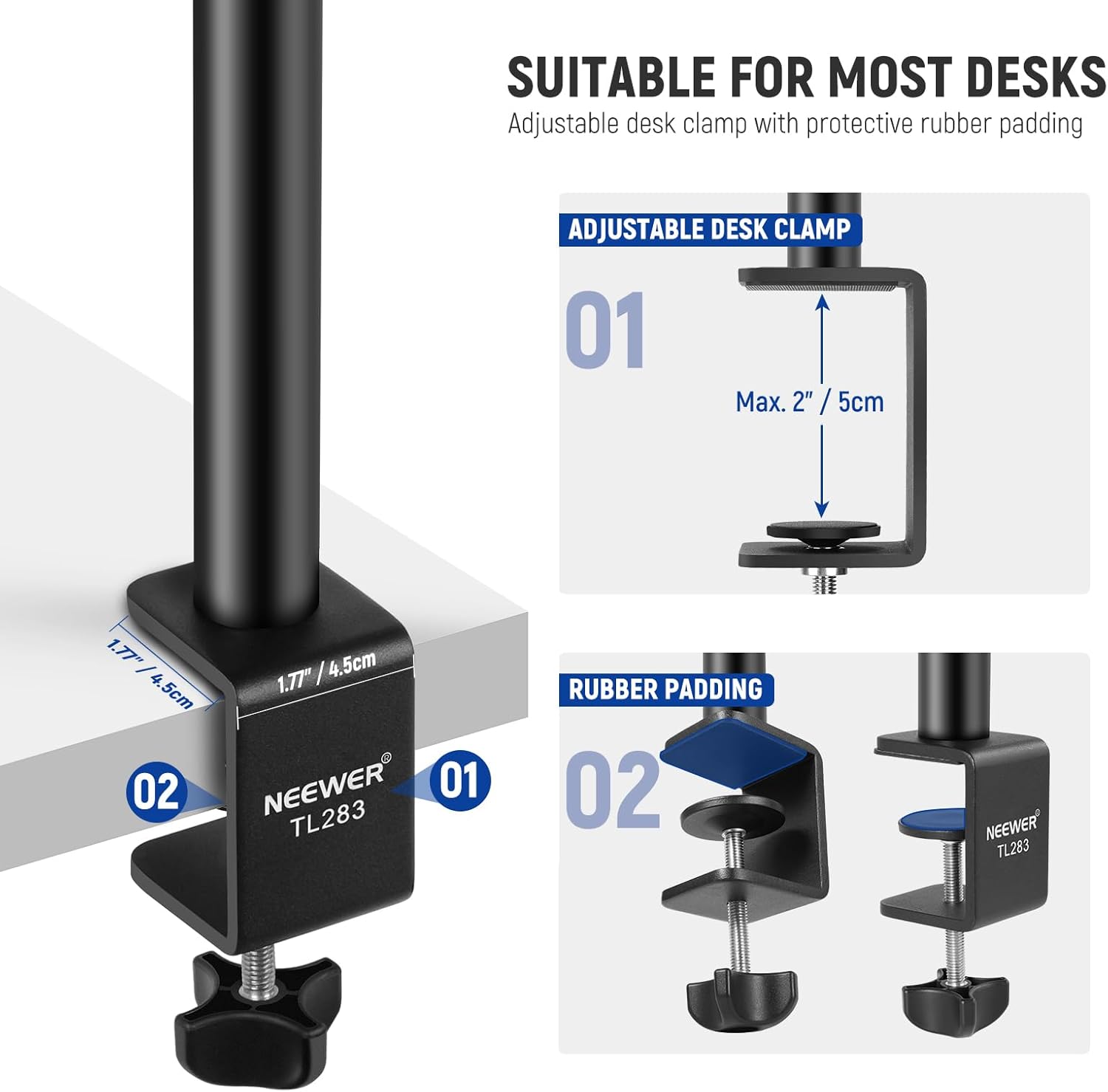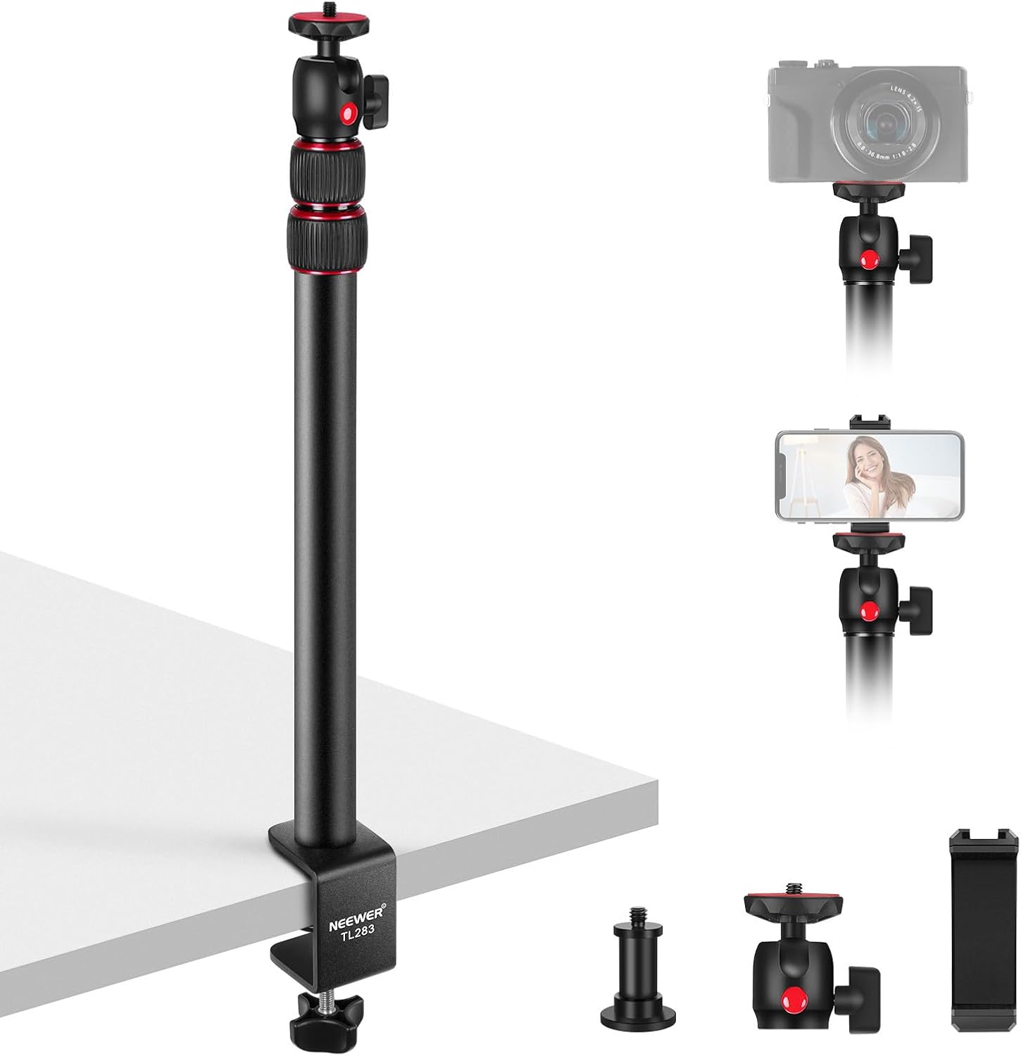 【17″-40″/43-102cm Telescopic Digicam Stand for Desk】 NEEWER TL283 3-section telescopic desk digicam mount is expandable from 17″/43cm to 40″/102cm, providing a large peak vary for versatile adjustment and numerous necessities. Twist locks firmly join the sections to forestall wobbling throughout use