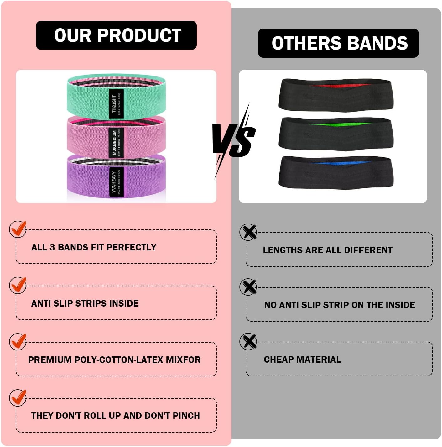 【NON-SLIP AND DURABLE】: Cloth and elastic latex interweave expertise prevents booty bands from slipping throughout exercises. Inside latex will increase the elasticity and sturdiness of elastic band to keep away from shedding elasticity and pressure after frequent stretching.
