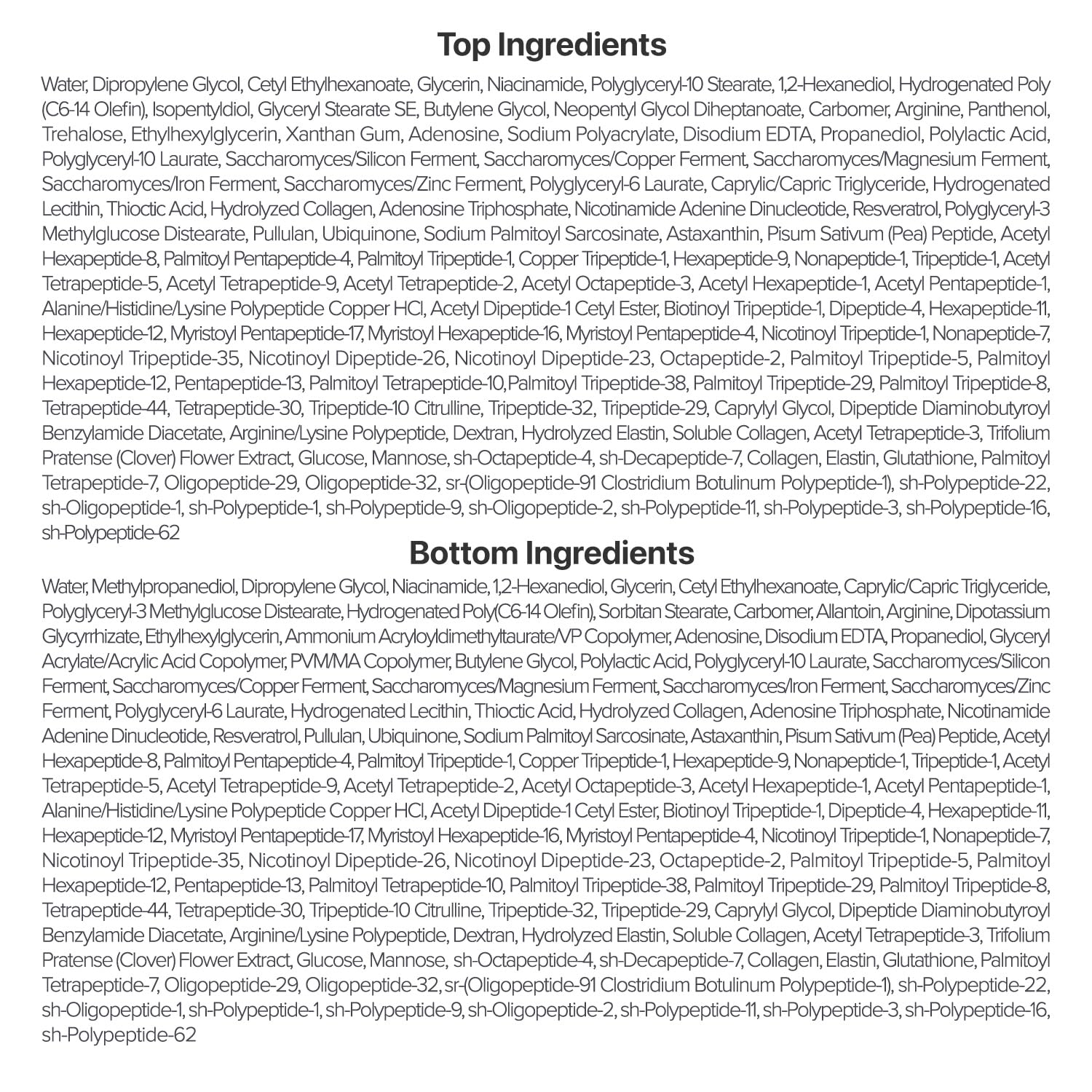 [KEY INGREDIENTS] Formulated with NAD+, an anti-aging ingredient that enhances cell turnover, stimulates collagen manufacturing, and helps pores and skin restore, together with 50 kinds of peptides to plump and agency the pores and skin. Hydrolyzed collagen and adenosine are additionally added to successfully goal wrinkles and improve pores and skin elasticity.