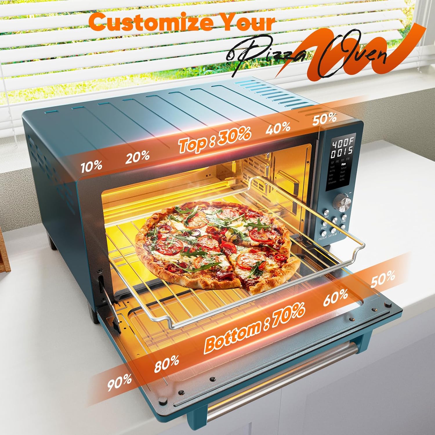PIZZA OVEN WITH ON-THE-FLY CUSTOMIZATION – Regulate the convection fan velocity and the ratio of high and backside heaters from 0 to 100% to create completely different heating zones at any time. For the right thick pizza, set the underside heaters to 70% energy and the highest heaters to 30% for a crispy crust and completely melted, tacky toppings.