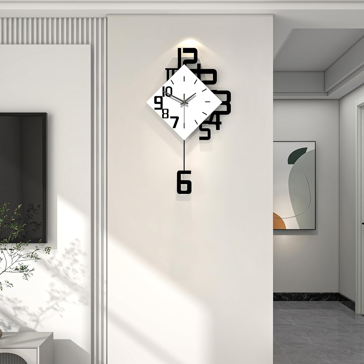【Straightforward to Use】: Simply want a number of easy steps to put in this kitchen wall clock. This contemporary wall clocks battery operated is Powered by 2 AA batteries (not included). one for quartz motion,one other for pendulum