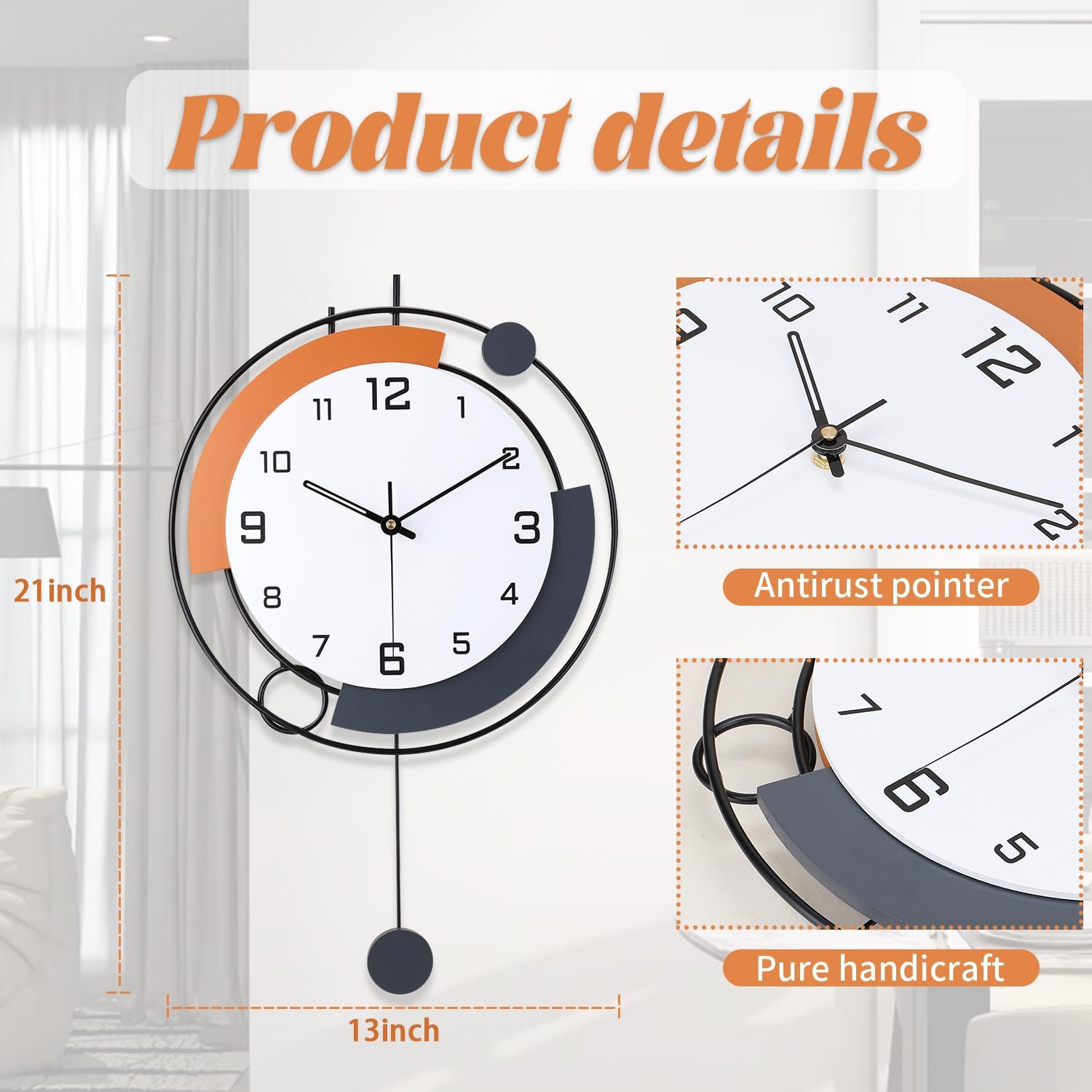 【Wall Clock for Ornament】-Steel pointers with a darkish darkish gray pendulum,orange and darkish gray shade matching,extra elegant and distinctive,completely matches completely different house types,is a scenic line on the wall and luxry ornament.