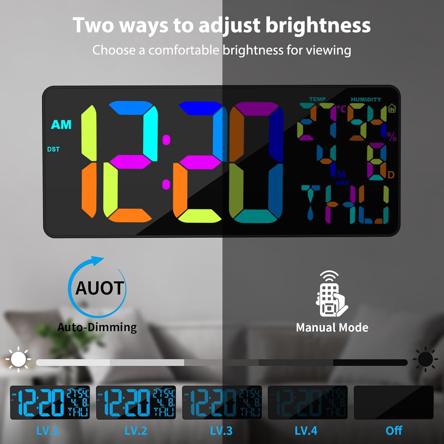 【Auto/Guide Adjustable Brightness】- Along with the 4 manually adjustable brightness ranges, our massive quantity digital clock options an auto brightness mode that adjusts brightness primarily based on the encircling mild, guaranteeing probably the most comfy viewing expertise. When you desire a totally darkish sleeping setting, you’ve the choice to show off the display screen.