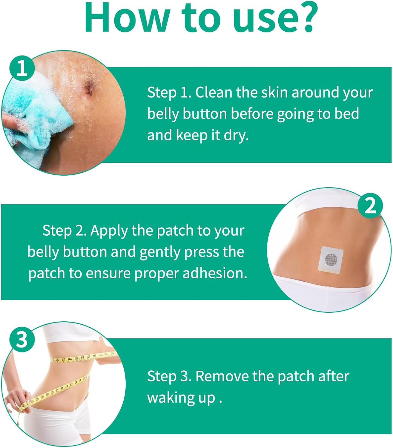 🔷Utilization: Earlier than use, clear the stomach pores and skin and guarantee it’s dry. Take out the patch, stick it on the stomach, take away the patch after waking up.