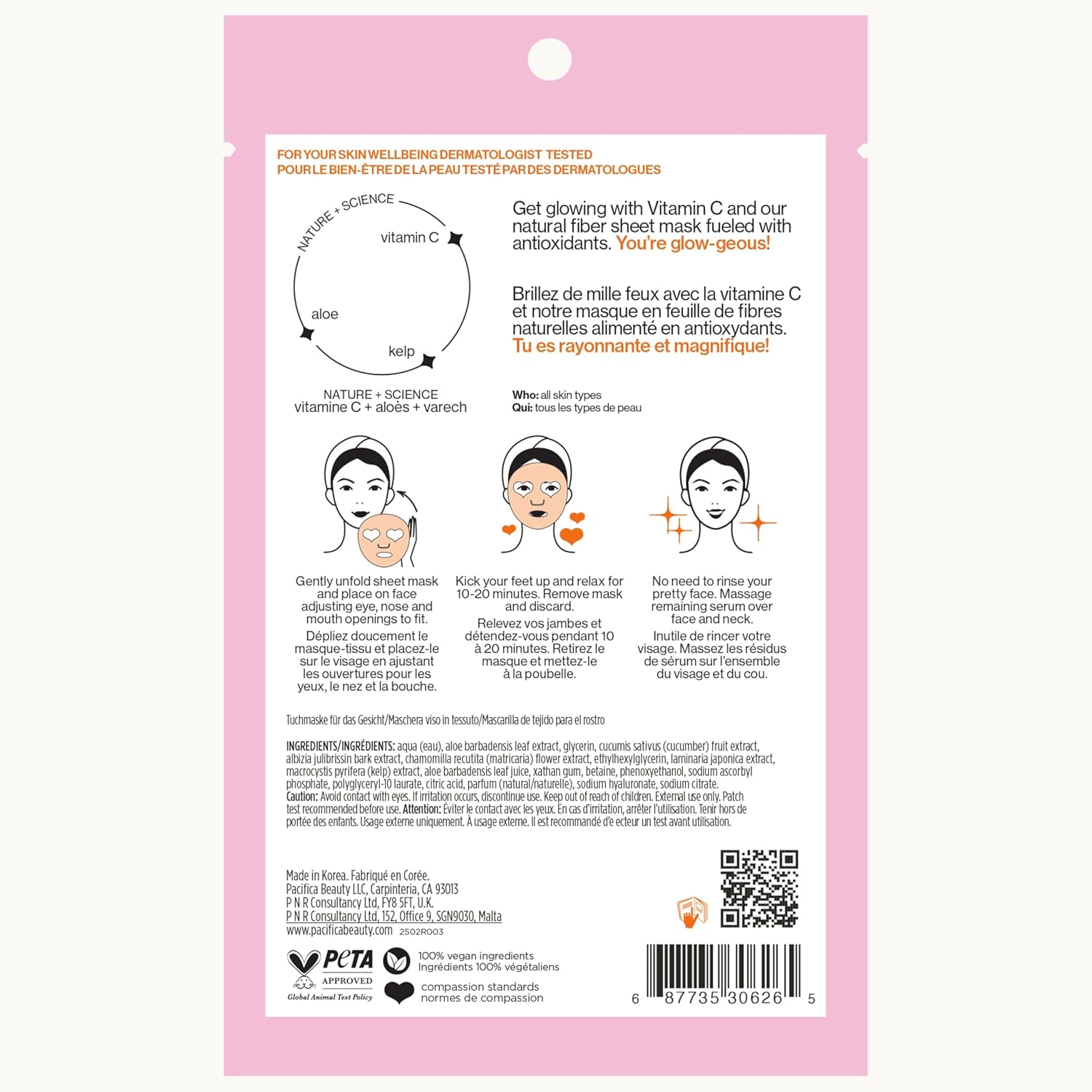 BIODEGRADABLE SINGLE USE SHEET MASK MADE FROM NATURAL FIBERS Get glowing with Vitamin C and our pure fiber sheet masks fueled with antioxidants. You are glow-geous!