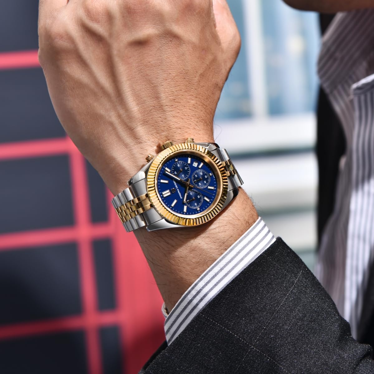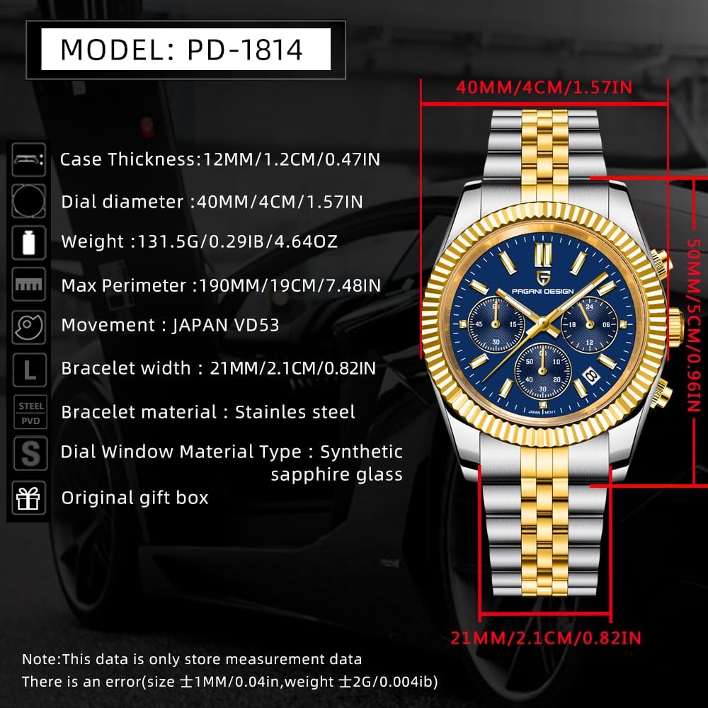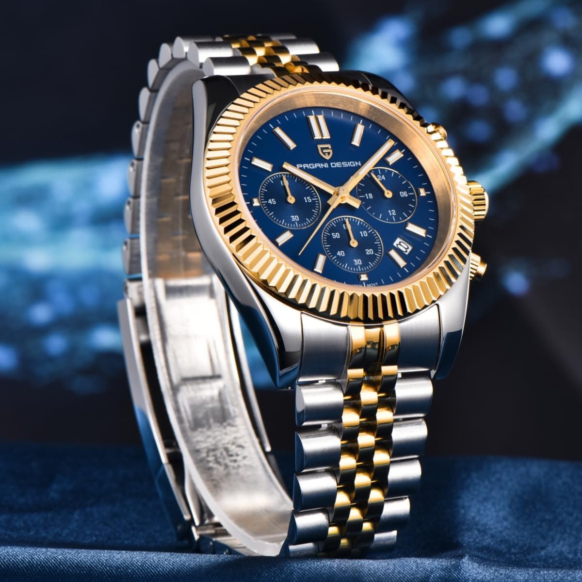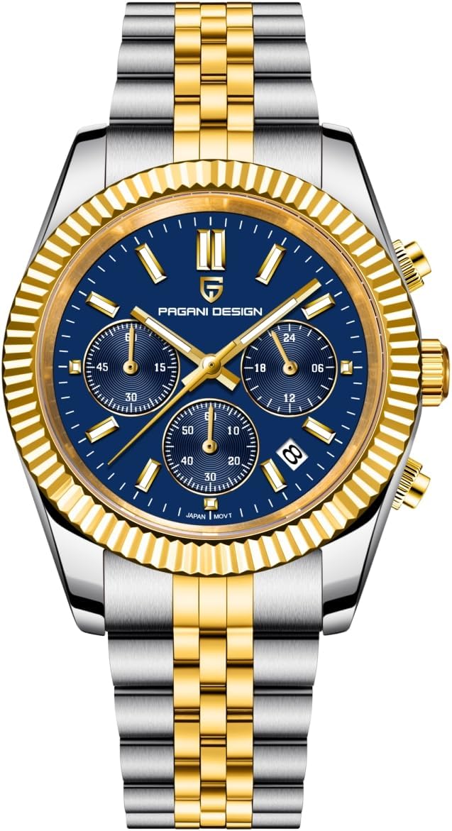 Pagani Design Males’s Chronograph Quartz Watch, Stainless Metal Strap, Waterproof, Spherical Dial with Date Show