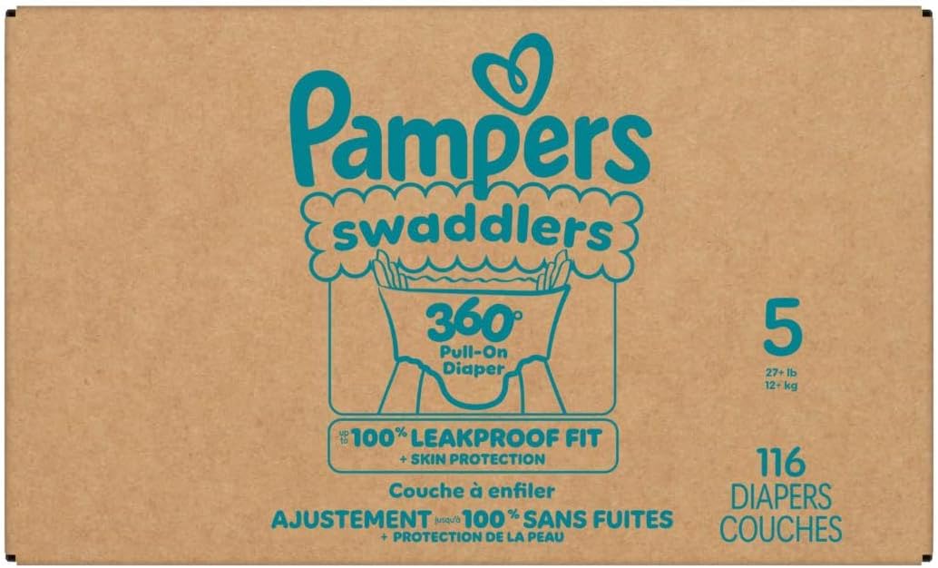 The Pampers Swaddlers 360° comfortable, dry safety you recognize and love simply received up to date—with E-Z Off tabs for even simpler adjustments. That includes ultrasoft absorbent layers and Twin-Leak Guard Obstacles that assist defend the place leaks occur most, these diapers present as much as 100% leakproof pores and skin safety to your infant! From the #1 Pediatrician Beneficial Model*, Pampers Swaddlers 360° are designed to assist your toddler’s motion from crawling age to standing age with a 360-degree stretchy waistband. The brand new EZ-off tabs make adjustments stress-free and mess-free—whether or not your infant is mendacity down or standing up—simply tab off, wrap up, and pull on a recent diaper pant. Swaddlers 360° toddler diapers supply trusted safety you possibly can rely on: they’re hypoallergenic, dermatologically examined, and freed from parabens and latex. Plus, Twin LeakGuard Obstacles and a blowout barrier assist stop as much as 100% of leaks—even blowouts! To search out your child’s ideally suited Comfortable Dry Match, simply measure by weight and reference our obtainable child diaper sizes: • Dimension 3 diapers (16–28 lbs.) • Dimension 4 diapers (22–37 lbs.) • Dimension 5 diapers (27+ lbs.) • Dimension 6 diapers (35+ lbs.) • Dimension 7 diapers (41+ lbs.) Pair Pampers Swaddlers 360° with Pampers Delicate Child Wipes to assist make adjustments fast, straightforward, and delicate in your child’s pores and skin. *Primarily based on 2021 survey of U.S. and Canadian pediatriciansSwaddlers 360° pull on diapers supply our greatest pores and skin safety to your child! The waistband stretches comfortably round your child’s waist and adapts to their each transfer for a mushy and cozy match — no tape wanted.