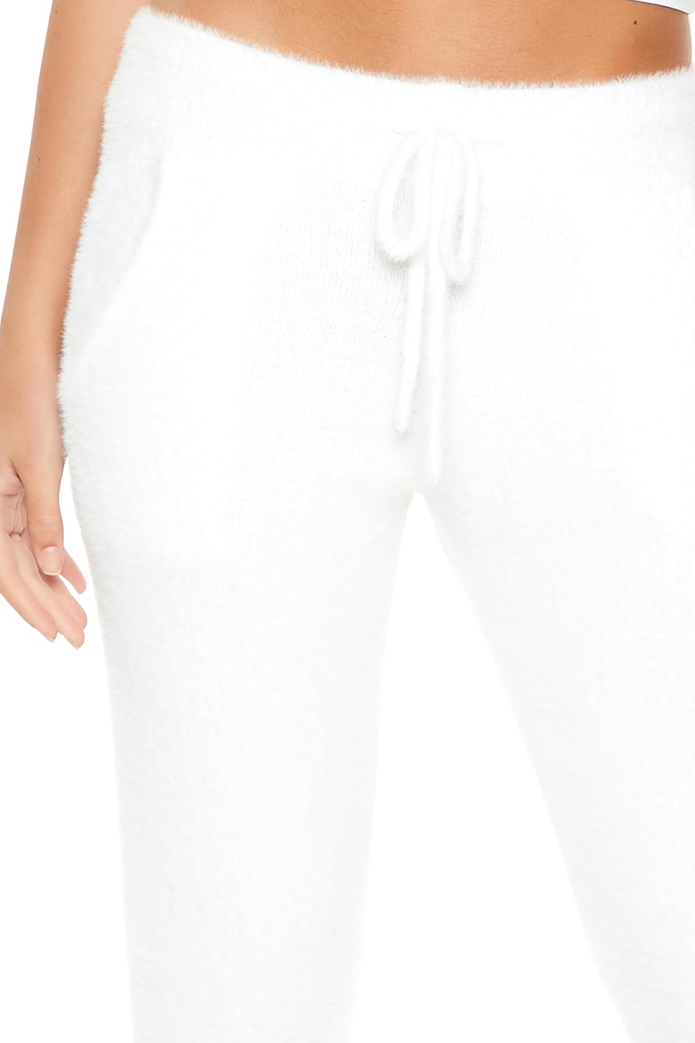 A pair of fuzzy sweater-knit joggers that includes a drawstring waist, slanted entrance pockets, and fitted silhouette.