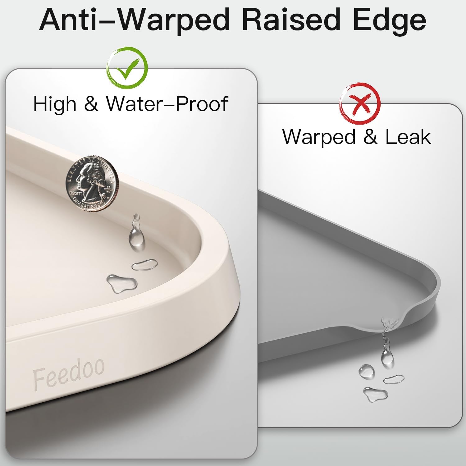WARPED RESISTANT RAISED EDGE: Contains a 0.4inch(10mm) raised, trapezoid edge design that resists warping, guaranteeing 100% mess-free feeding. The one mat with deformation-resistant edges available on the market.