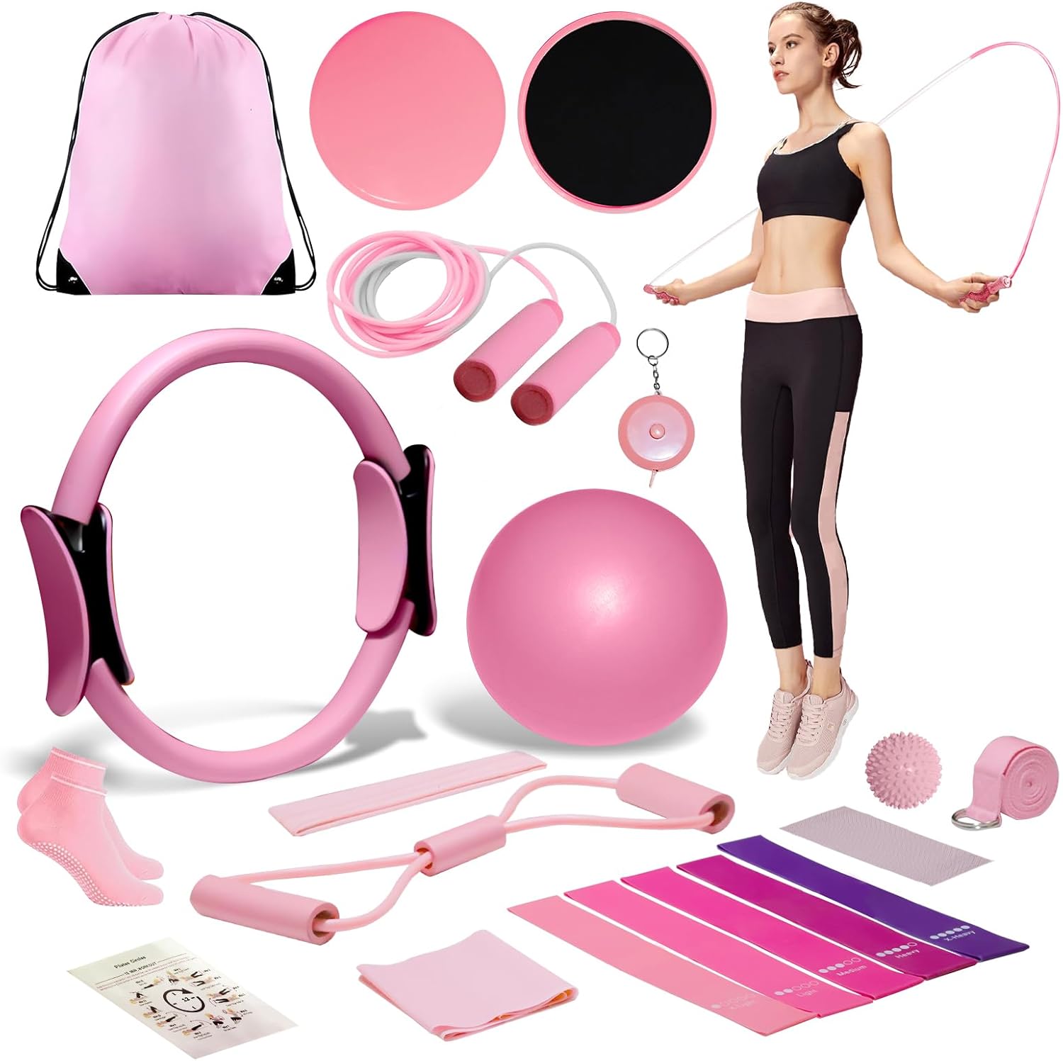 [The Complete Pilates Kit for women] Your All-in-One House Studio. Construct energy, enhance steadiness, and increase flexibility with our full package—that includes a Pilates ring, Pilates ball, resistance bands, sliders, a soar rope, and a exercise information. It affords all the things wanted for an house pilates package, making it supreme for at house exercise tools