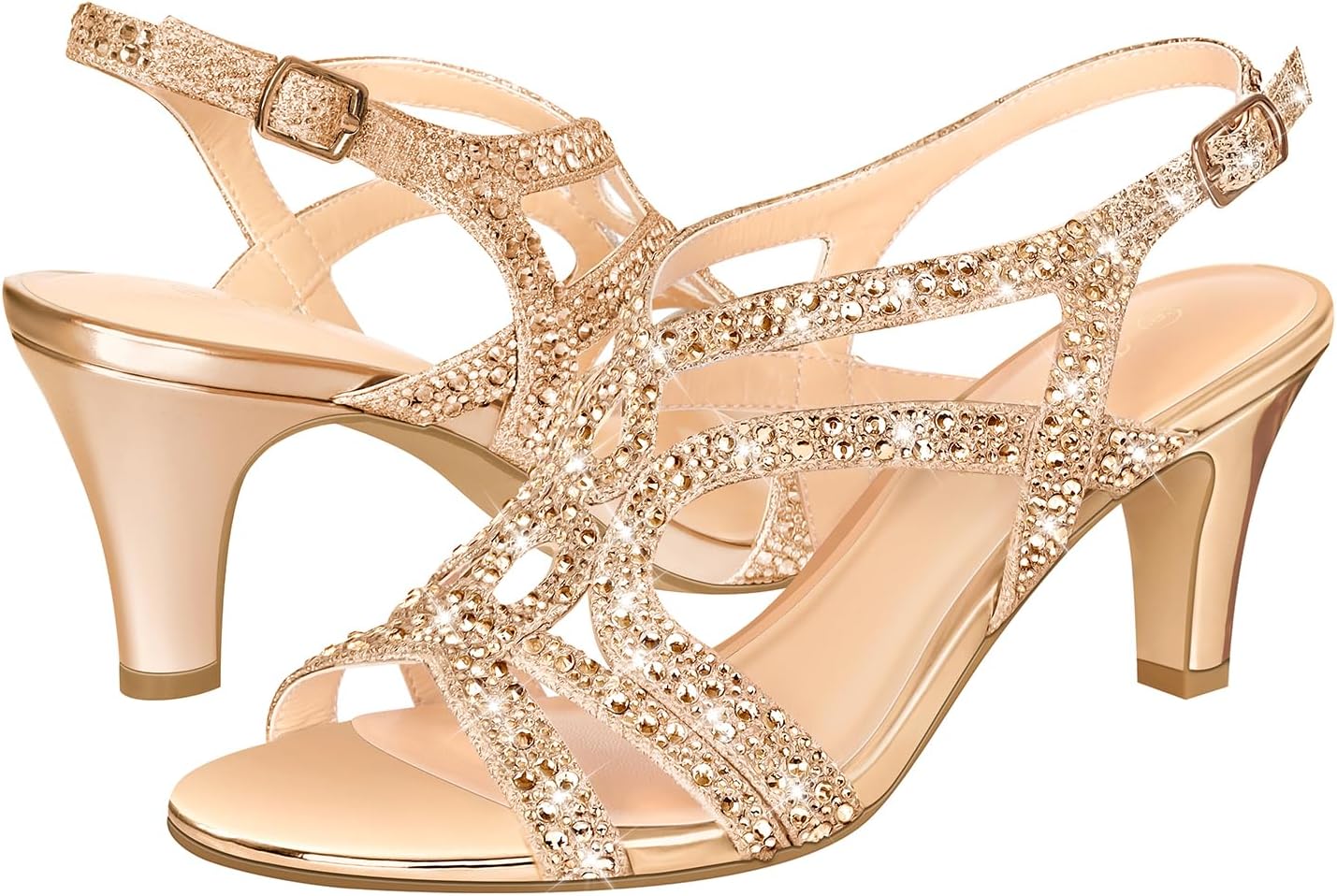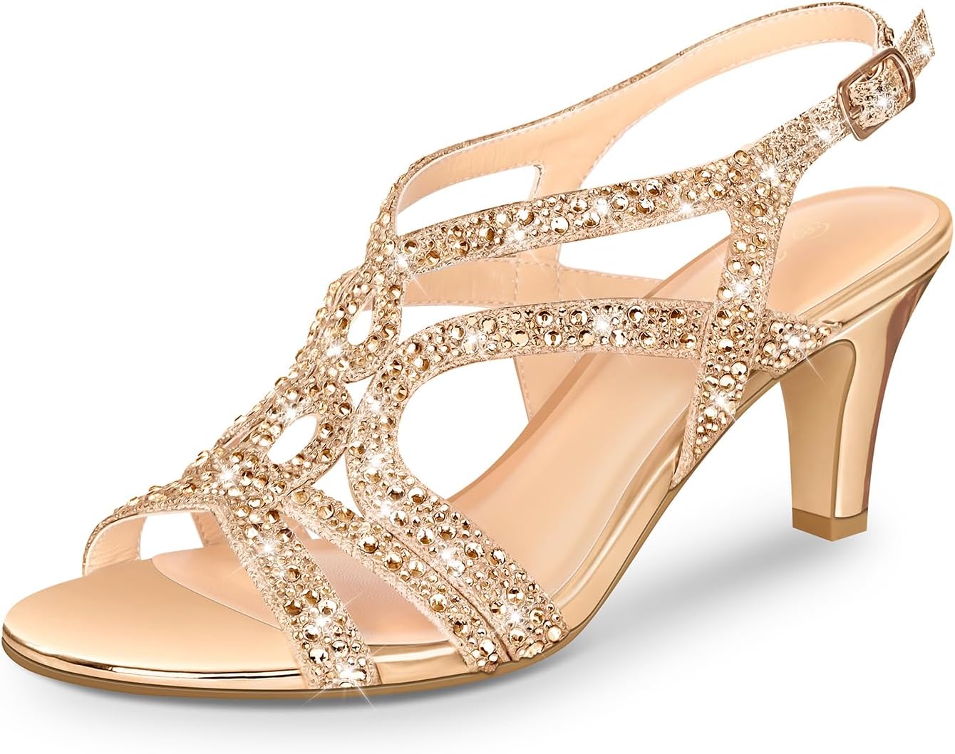 PIZZ ANNU Girls’s Amelia Heels Sandals Sparkle Crystal Open Toe Slingb…