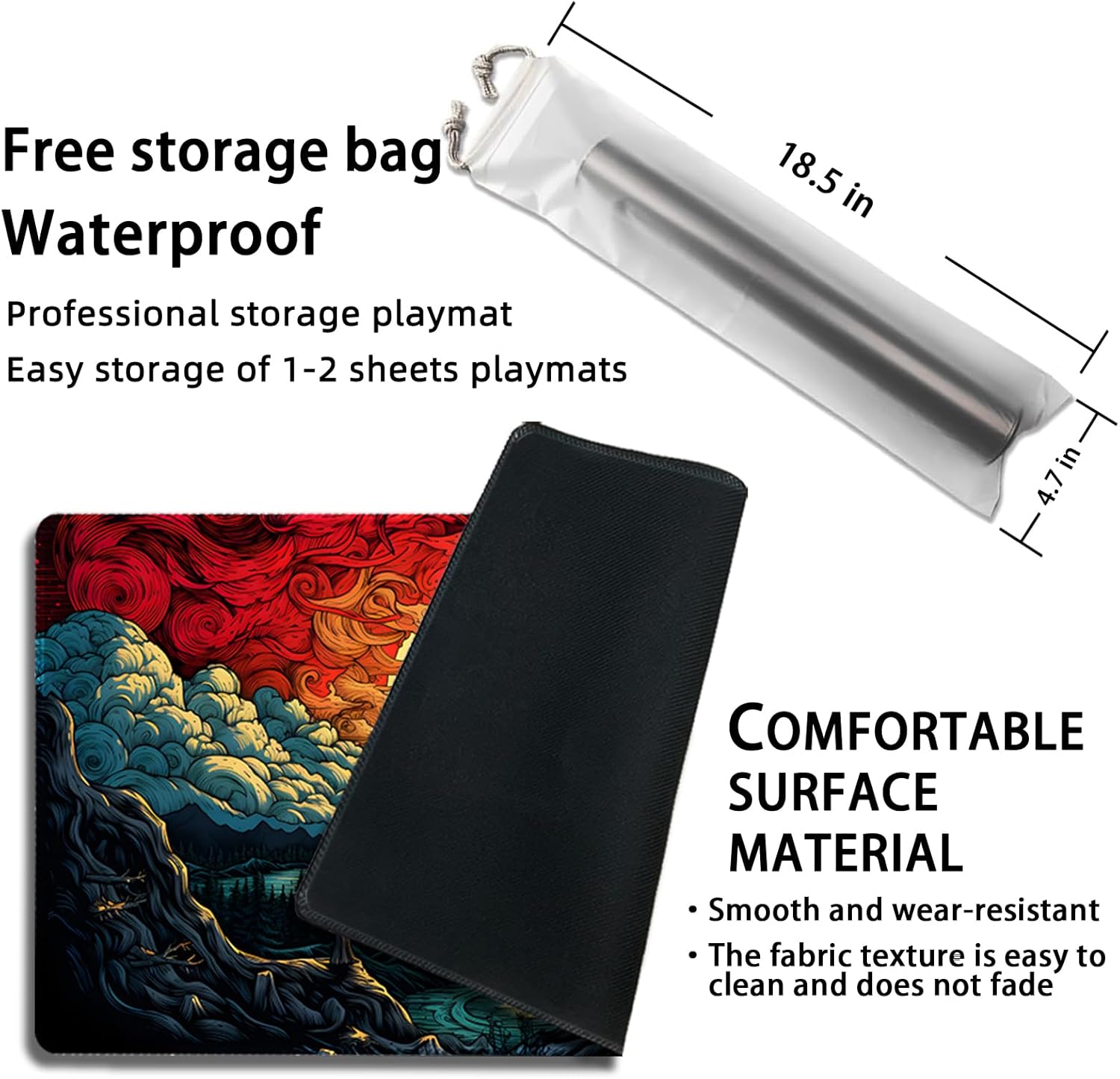 【Higher fight expertise】Management your deck with calculated precision. Your recreation mat has a card-friendly polyester prime and a non-slip rubber backside. Draw, flip, and faucet playing cards quick on a secure floor.