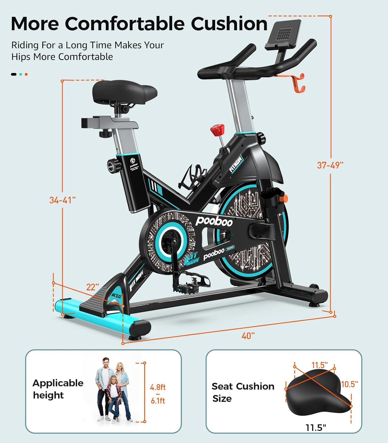 pooboo Train Bike, Adjustable Magnetic Resistance Silent Belt Drive, Indoor Biking Bike for Dwelling Cardio Gymnasium, Health Stationary Bike Machine with 350lbs/300lbs Weight Capability, Monitor with Pulse & Ipad Mount &Upgraded Model Seat