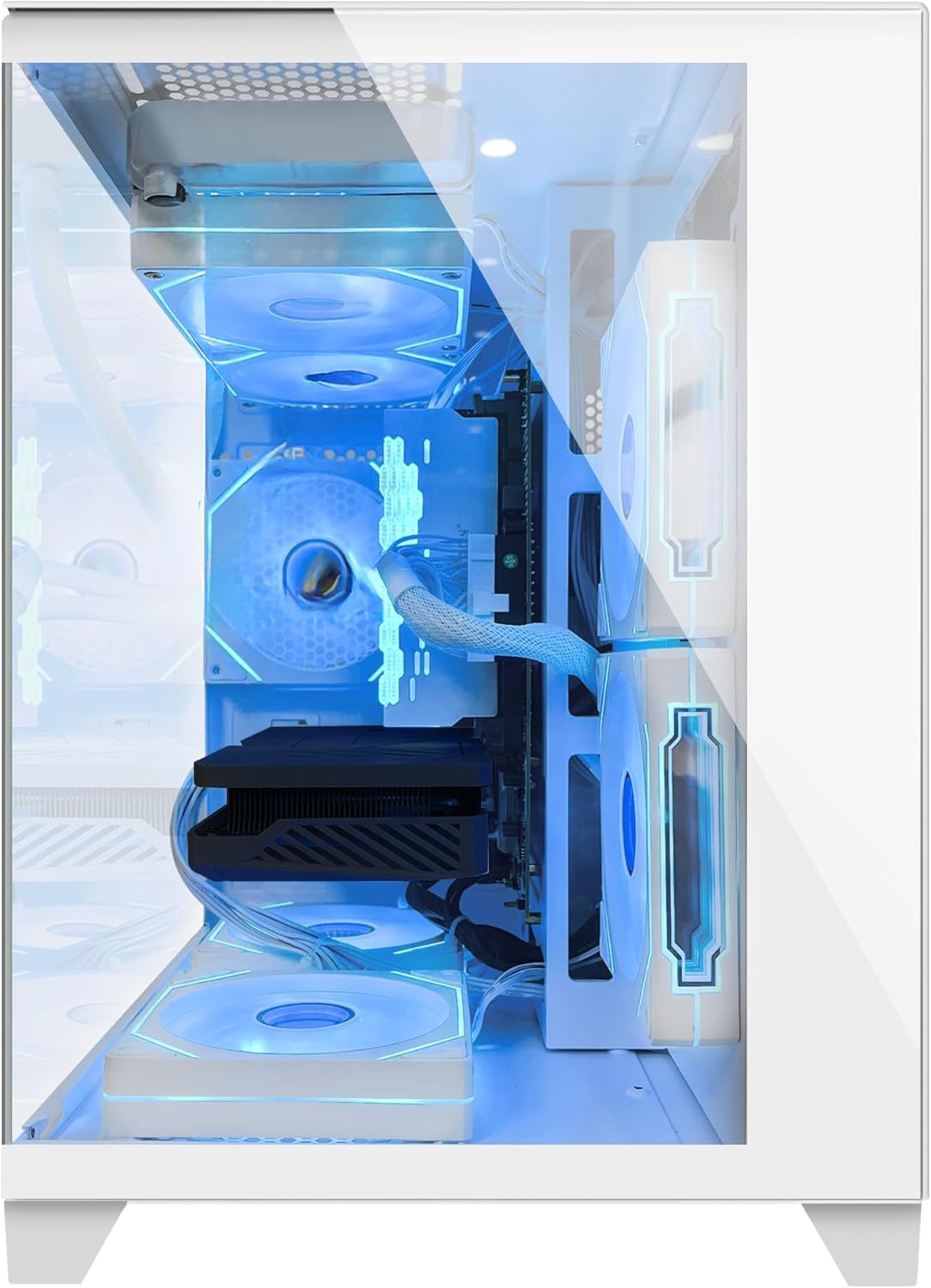 Considerate Design, Trendy Look: Discover limitless prospects with an revolutionary vertical desktop PC that mixes versatility and energy. As a substitute of a boring black field, it includes a double-sided tempered clear glass panel with color-changing RGB FAN that blends completely into your area. The highest is designed with a number of ports so that you can join your units shortly and simply. With clean airflow and decrease noise ranges, this tower PC laptop stays quiet even when working at peak efficiency ranges.