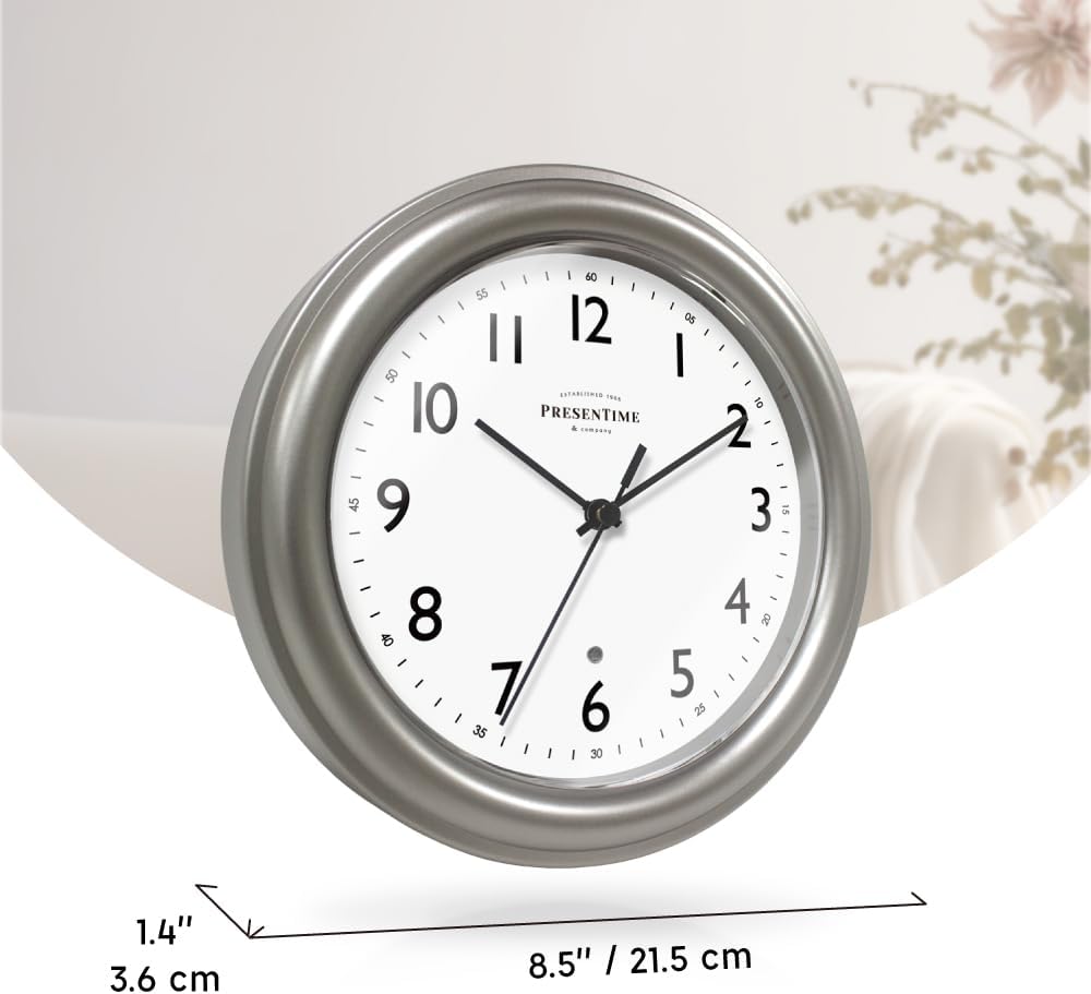Product Identify: PresenTime & Co. 8.5″ Fashionable Farmhouse Evening Gentle Wall Clock – Silver