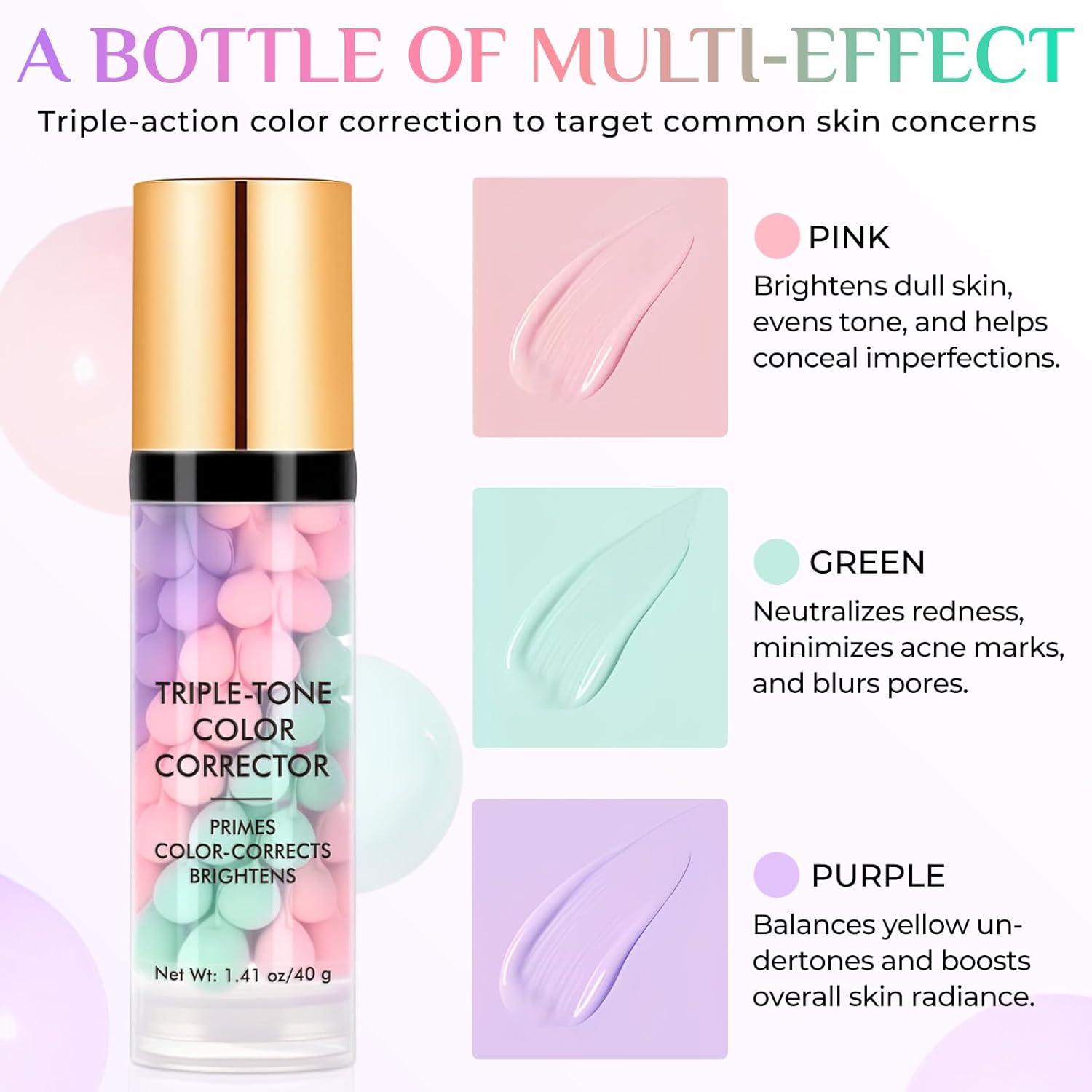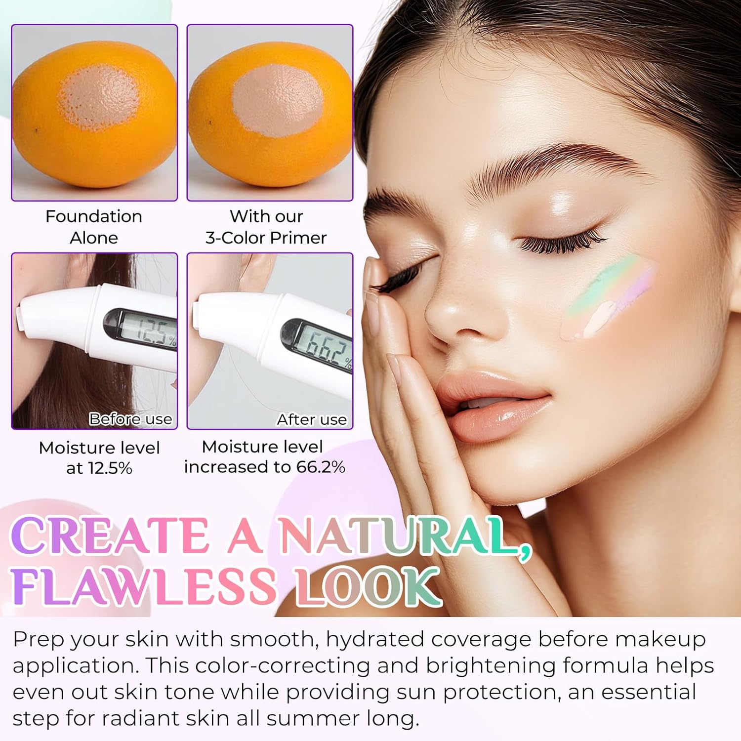 SUN PROTECTION + PERFECT CONCEALER IN ONE :Face primer comes with SPF50+/PA++++ to supply broad-spectrum safety, beneath ultraviolet rays. The three-color correction know-how (purple/pink/inexperienced) particularly addresses pores and skin tone points: purple brightens dullness, pink fades spots, and inexperienced neutralizes crimson blood streals, reaching “solar safety + base make-up in a single step” and simplifying the skincare course of
