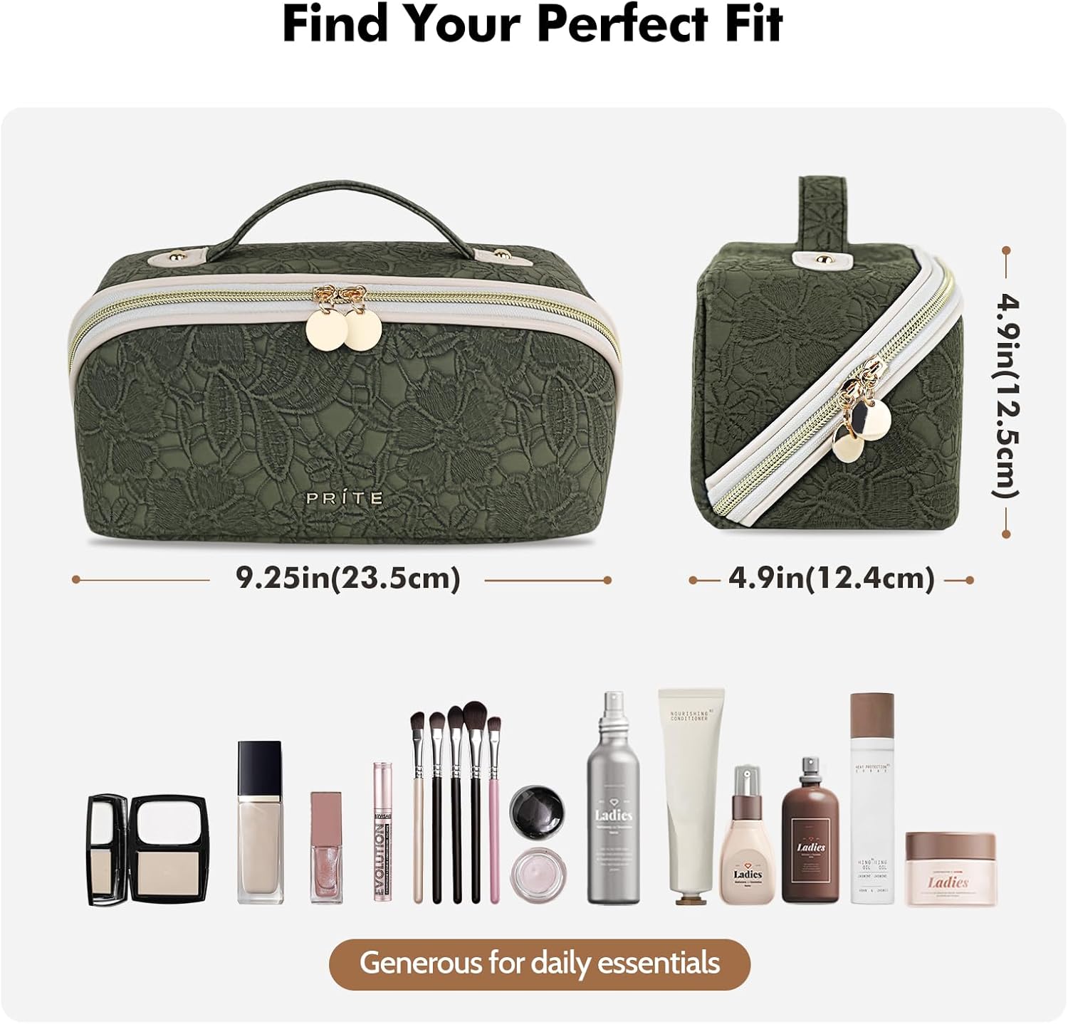 【Good Group】Accessible in Medium (9.25″ x 4.9″ x 4.9″) and Massive (10.23″ x 5.1″ x 5.1″), this bag options 3 compartments and three separate pockets to neatly retailer cosmetics, brushes, and skincare. No extra digging—every part stays seen and accessible