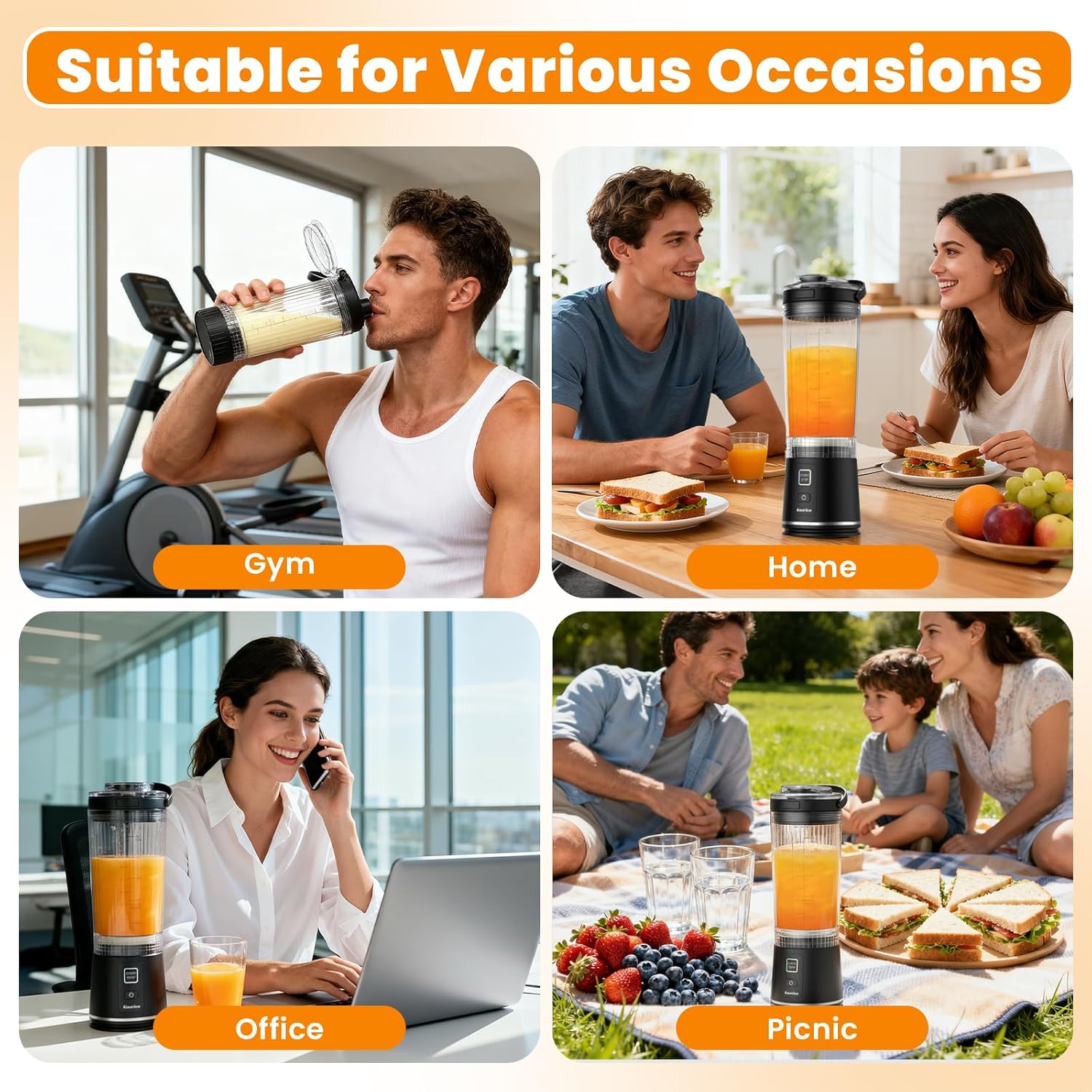 【Highly effective TurboForce Motor】 Our moveable blender is provided with precision-engineered TurboForce Motor, delivering 26000 RPM of pure torque—crushing ice, frozen fruit, and nuts simply into silky smoothness in simply 30 seconds. This moveable blender for smoothies engineered with superior brushless know-how, it eliminates friction, reduces warmth, and ensures ultra-durable, quiet efficiency. No jams, no burns-out, simply relentless energy that lasts. This small blender for smoothies nails it
