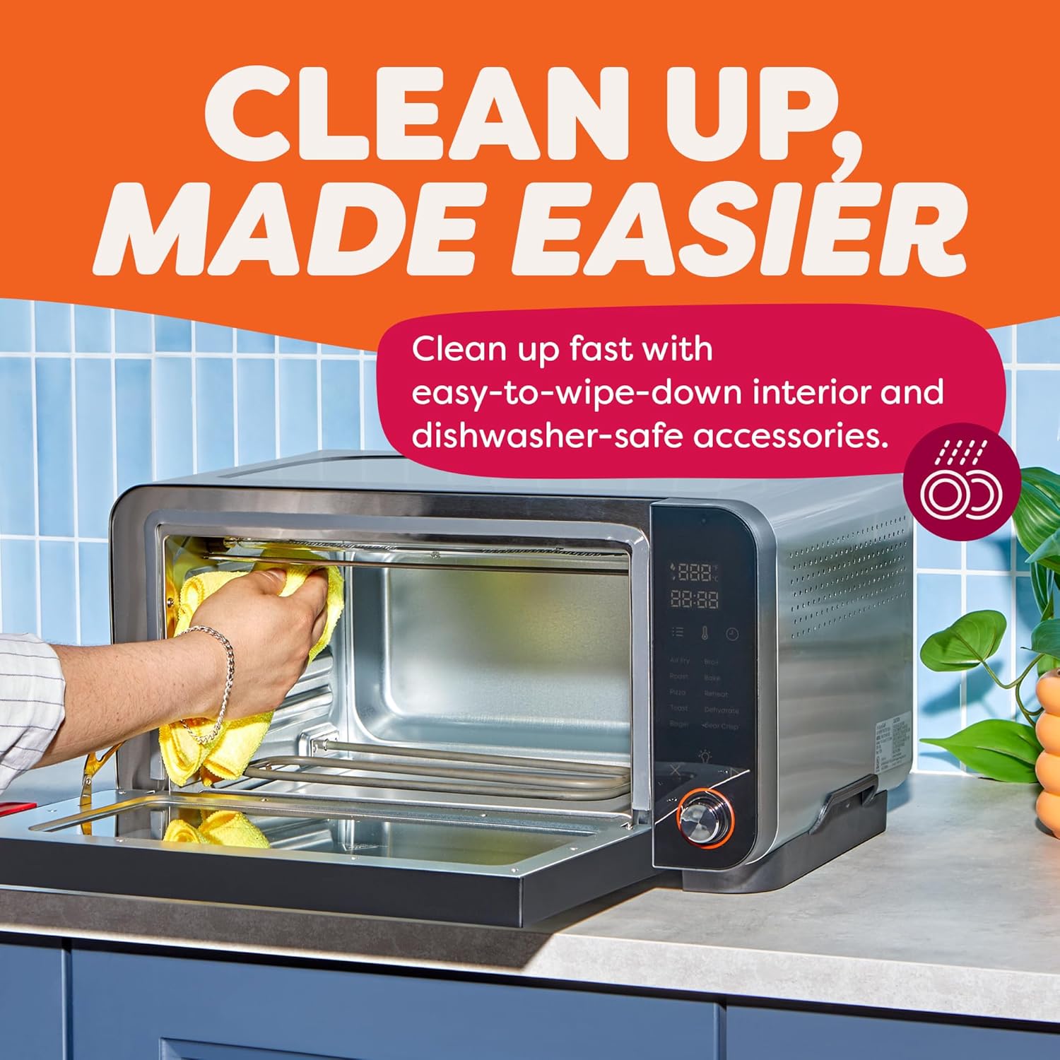 10 Cooking Features: Air fry, roast, bake, sear crisp, toast, bagel, broil, dehydrate, reheat, and make pizza—multi function powerhouse equipment with little to no preheat time