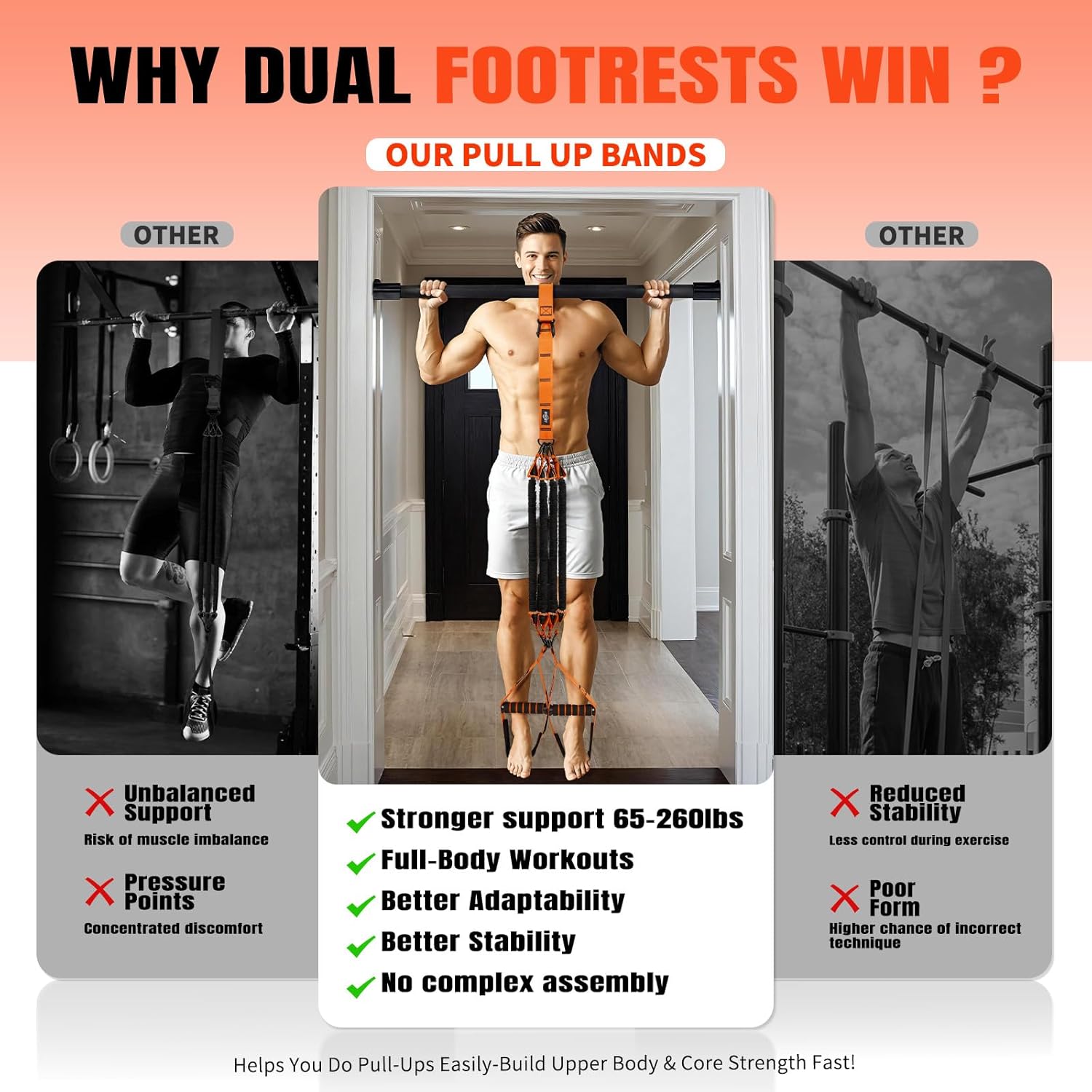 【Comfy Two Ft Design】 Why accept dangerous single-pedal Pull up bands? Our two toes pull up help band (pull up straps) distribute weight evenly, eliminating wobbles and slips throughout explosive lifts. The additional-wide, anti-slip pads cradle your toes comfortably, even throughout sweaty periods, whereas the strengthened stitching handles as much as 260lbs of pressure (heavy obligation pull up help band). No extra shaky kind or muscle pressure, guaranteeing secure, steady pull up coaching each time!