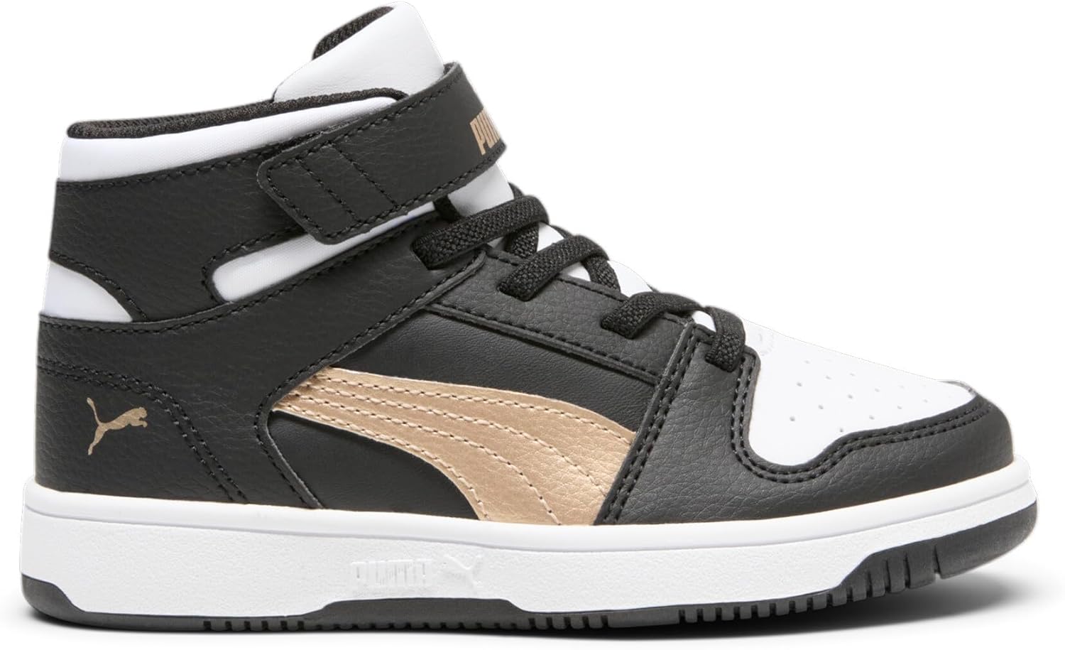 Puma, Unisex-Baby, Rebound Layup Mid Hook and Loop, Puma Black-Puma G…